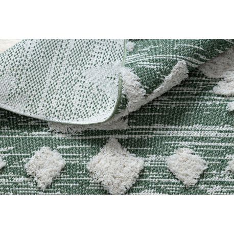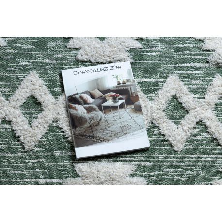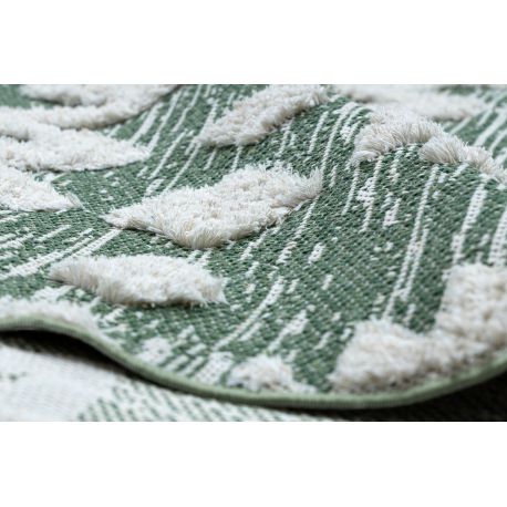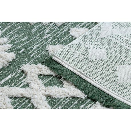 Dywan MOROC Zygzak 22319 Ekologiczny, EKO SIZAL frędzle - dwa poziomy runa zielony / krem, z bawełny recyklingowanej | MakataSolution