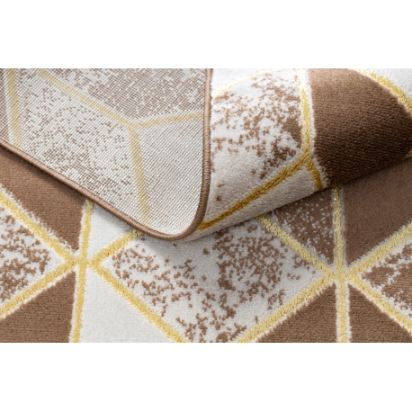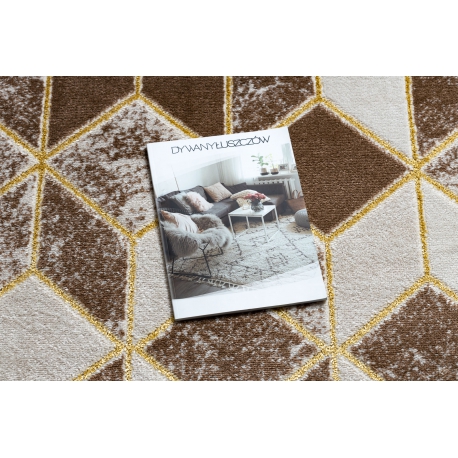 Dywan MEFE nowoczesny B400 Kostka, geometryczny 3D - Strukturalny, dwa poziomy runa ciemny beż | MakataSolution