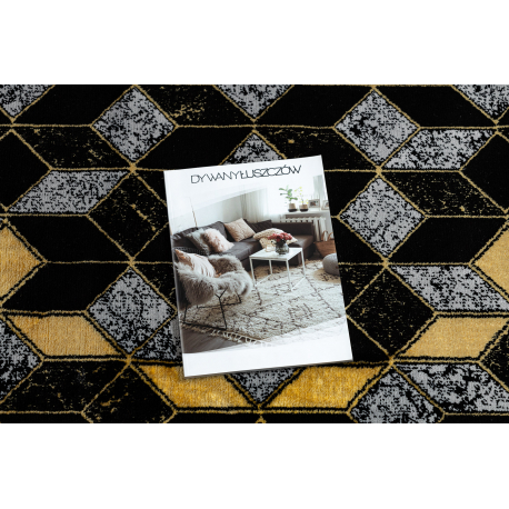 Dywan, Chodnik GLOSS nowoczesny 400B 86 stylowy, glamour, art deco, 3D geometryczny czarny / złoty | MakataSolution
