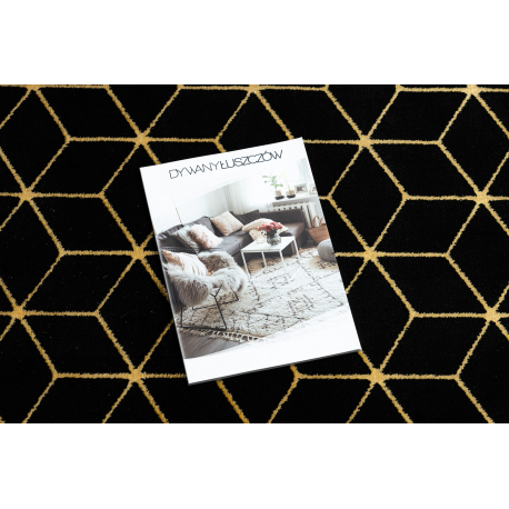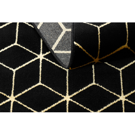 Dywan, Chodnik GLOSS nowoczesny 409C 86 Sześcian, stylowy, glamour, art deco czarny / złoty | MakataSolution