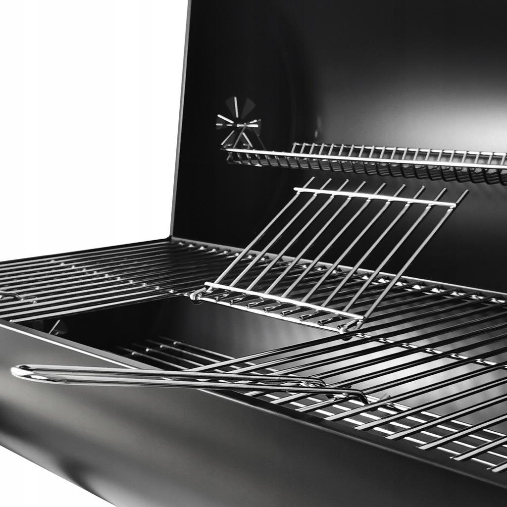 | Waga | 17,5 kg Wymiary głównego rusztu: 35 × 70 cm Wymiary dolnego rusztu: 28 × 66 cm Wymiary podwieszanego rusztu: 13 × 67 cm |