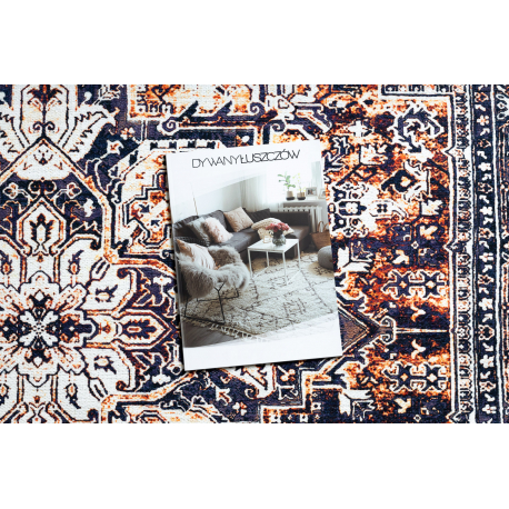 Dywan ANTIKA ancret sunset, nowoczesny ornament, do prania - granat / pomarańczowy | MakataSolution