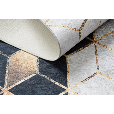 Dywan do prania ANDRE 1171 Kostka, geometryczny antypoślizgowy - czarny / złoty | MakataSolution