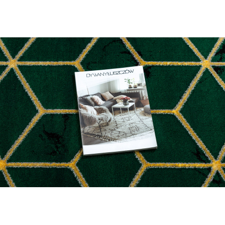Dywan EMERALD ekskluzywny 1014 glamour, stylowy kostka butelkowa zieleń / złoty | MakataSolution