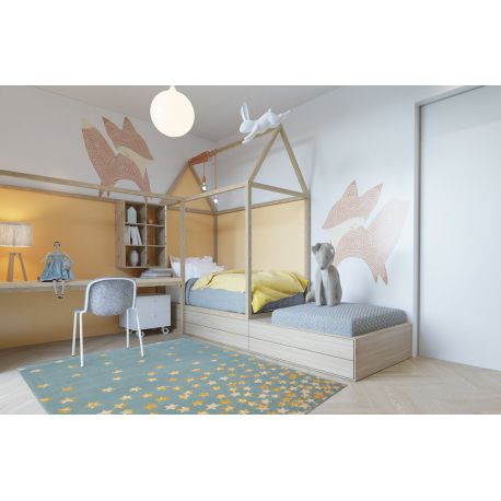 Dywan PASTEL 18408/032 - Gwiazdki turkus złoty krem | MakataSolution