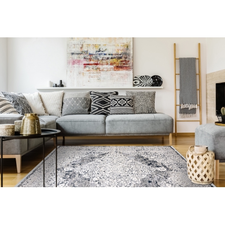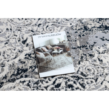 Dywan REBEC nowoczesny frędzle 51122A - dwa poziomy runa krem / granat | MakataSolution