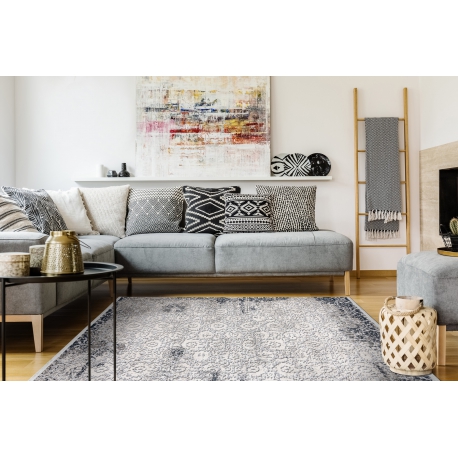 Dywan REBEC nowoczesny frędzle 51172A - dwa poziomy runa krem / granat | MakataSolution