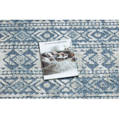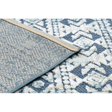 Dywan Strukturalny SOLE D3732 Aztecki, romby - płasko tkany niebieski / beż | MakataSolution