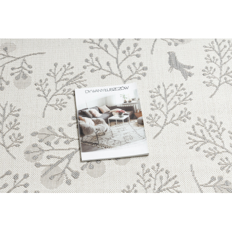 Dywan SZNURKOWY SIZAL FLAT 48774/367 Listki Ptaszki krem szary | MakataSolution