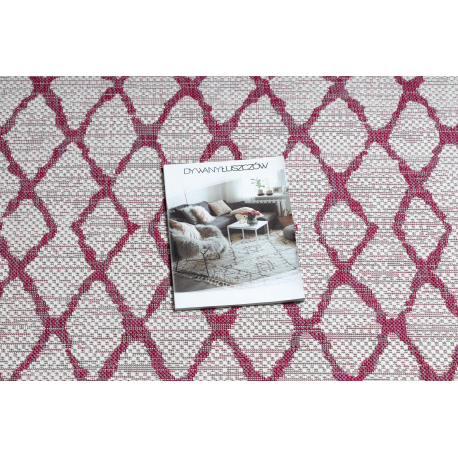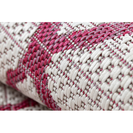 Dywan SZNURKOWY SIZAL SION Kratka 22129 płaskie tkanie ecru / fuksja | MakataSolution