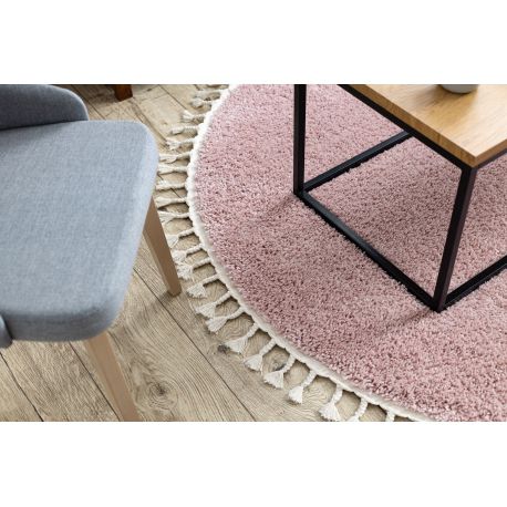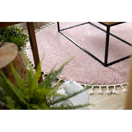Dywan BERBER 9000 koło różowy Frędzle berberyjski marokański shaggy | MakataSolution
