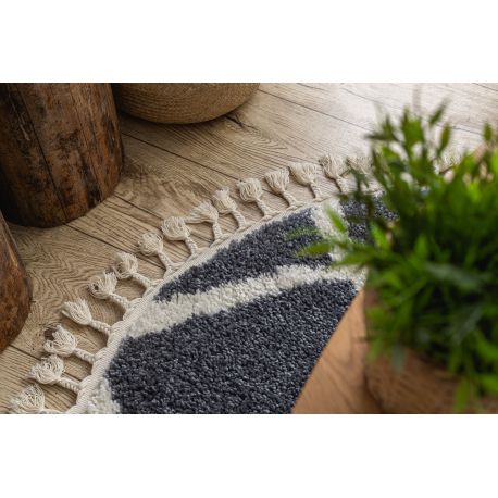 Dywan BERBER CROSS B5950 koło szary / biały Frędzle berberyjski marokański shaggy | MakataSolution