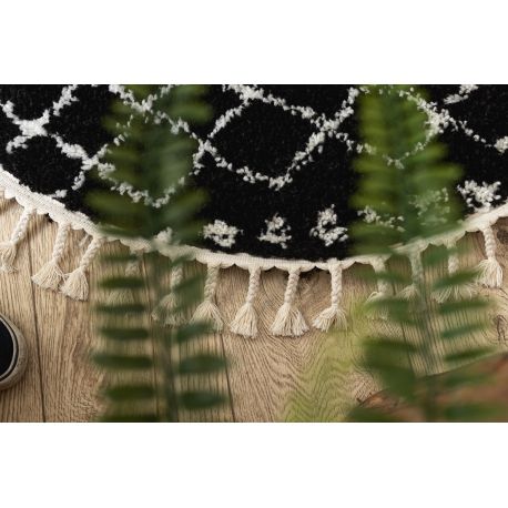 Dywan BERBER ETHNIC G3802 koło czarny / biały Frędzle berberyjski marokański shaggy | MakataSolution