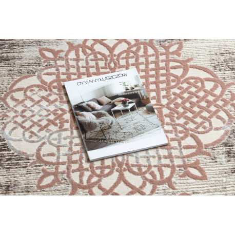 Dywan CORE W9797 Ramka, Rozeta - Strukturalny, dwa poziomy runa, beż / róż | MakataSolution
