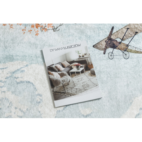 Dywan do prania BAMBINO 1163 Mapa świata, świat dla dzieci, antypoślizgowy - niebieski | MakataSolution