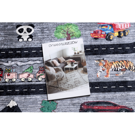 Dywan do prania BAMBINO 2092 Uliczki, samochody dla dzieci, antypoślizgowy - antracyt | MakataSolution