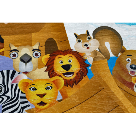 Dywan do prania BAMBINO 2685 Zwierzęta, Łódź, arka dla dzieci, antypoślizgowy - niebieski / brązowy | MakataSolution