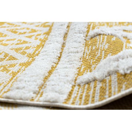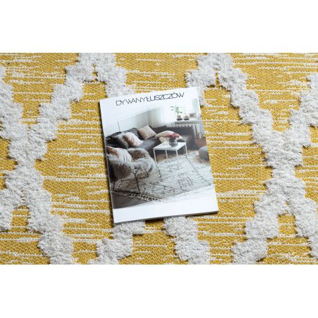 Dywan MOROC Romby 22297 Ekologiczny, EKO SIZAL frędzle - dwa poziomy runa żółty / krem, dywan z bawełny recyklingowanej | MakataSolution