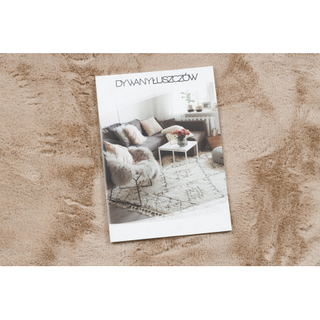 Dywan SHAPE 3105 Serce Shaggy - camel, beż pluszowy, antypoślizgowy, do prania | MakataSolution