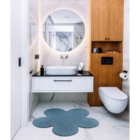Dywan SHAPE 3106 Kwiatek Shaggy - niebieski pluszowy, antypoślizgowy, do prania | MakataSolution