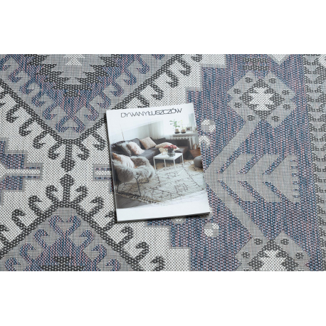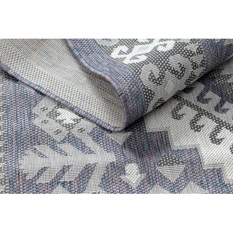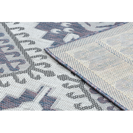 Dywan SZNURKOWY SIZAL SION Aztecki 3007 płaskie tkanie niebieski / róż / ecru | MakataSolution