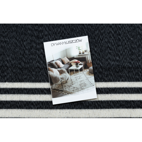 Dywan TWIN 22990 Ramka bawełna, dwustronny Ekologiczny frędzle - czarny / krem | MakataSolution