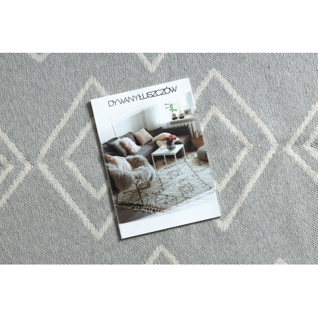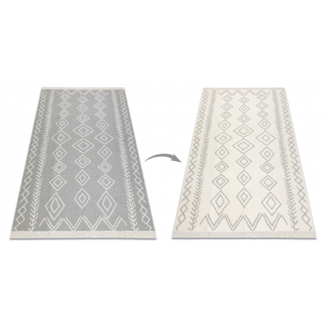 Dywan TWIN 23000 Boho, bawełna, dwustronny, romby Ekologiczny frędzle - szary / krem | MakataSolution