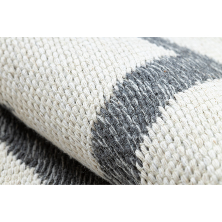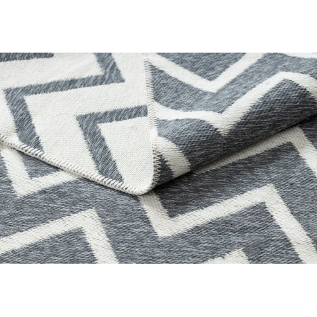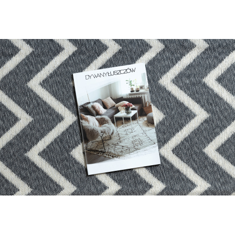 Dywan TWIN 23002 Zygzak, bawełna, dwustronny Ekologiczny frędzle - antracyt / krem | MakataSolution