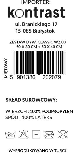 Dywanik łazienkowy CLASSIC WZ03 miętowy 2-częściowy 50×80 cm | MakataSolution