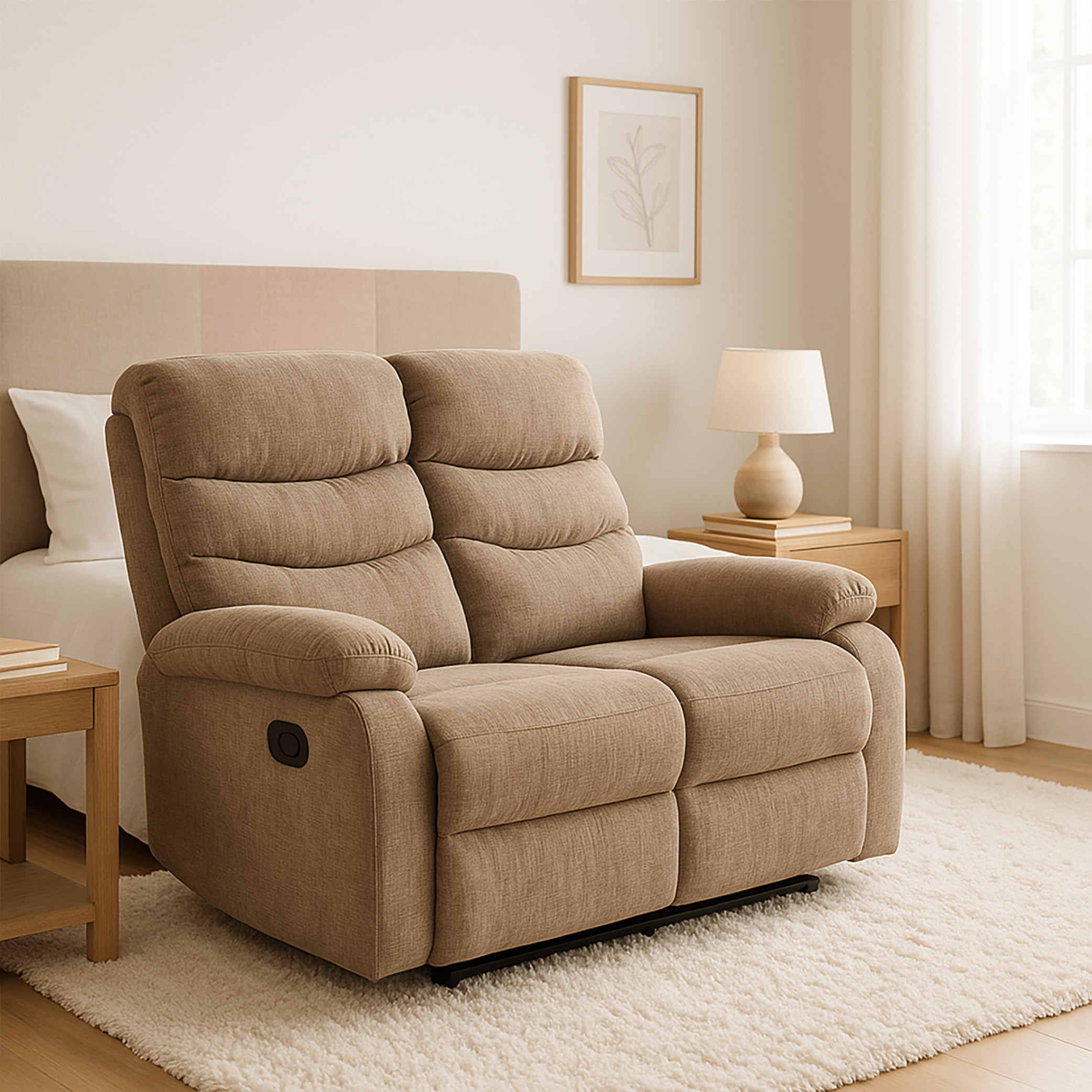 Dwuosobowy fotel rozkładany FW100-2 tapicerowany tkanina szenilowa. Do do salonu i pokoju wypoczynkowego.
