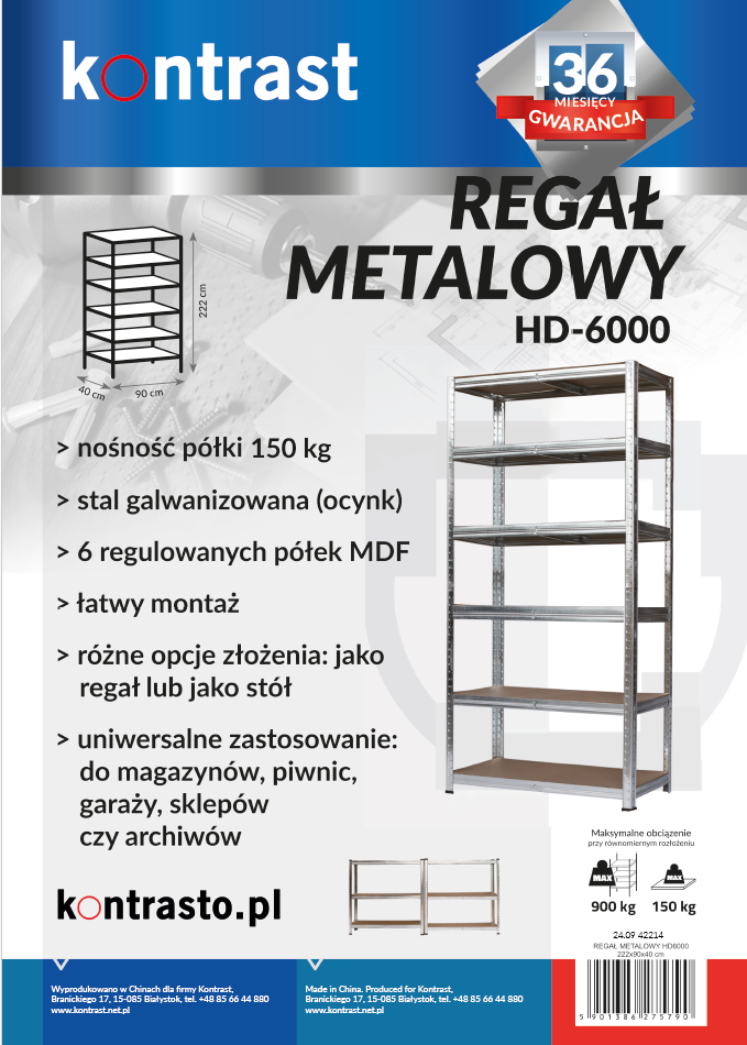 HD6000 Regał metalowy 222x90x40cm stal | MakataSolution