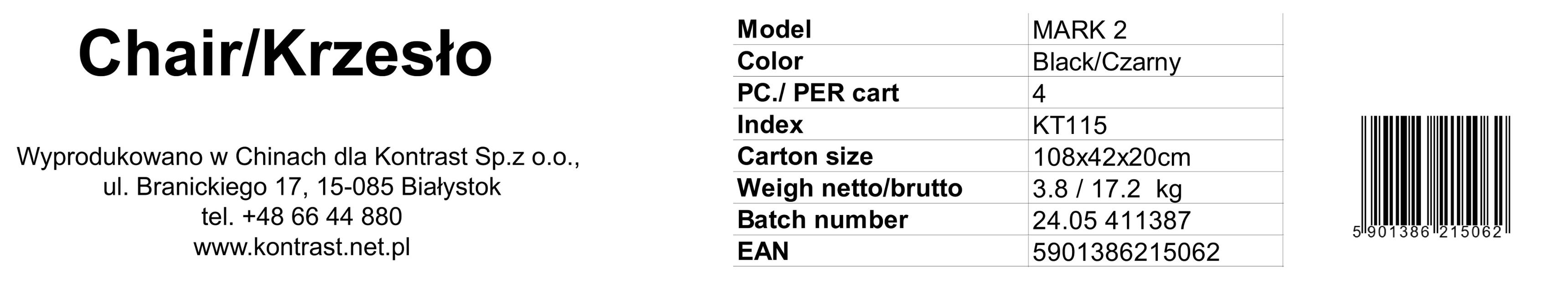 Krzesło tapicerowane do jadalni czarne Mark2 KT115 | MakataSolution