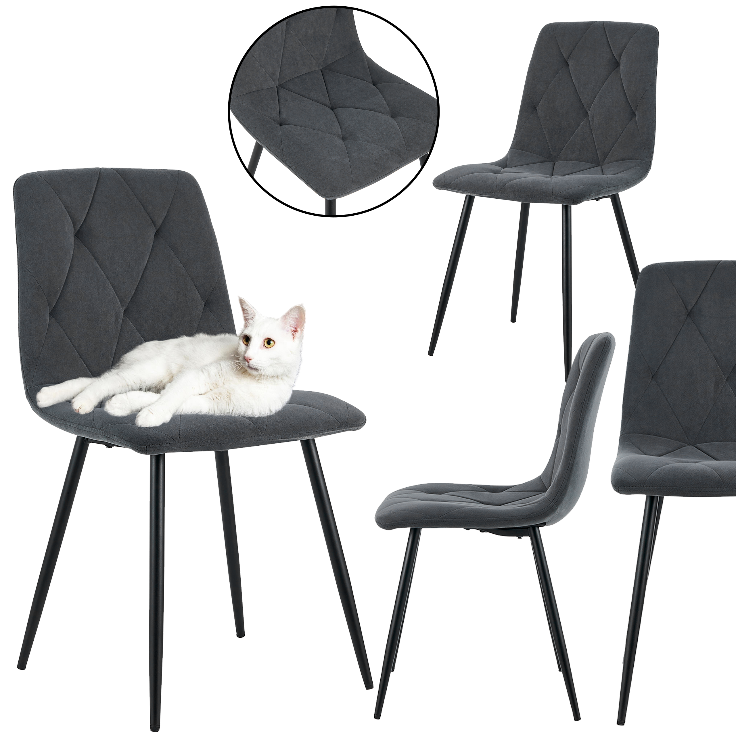 Krzesło tapicerowane do jadalni welurowe ciemnoszare NOVA KT111 | MakataSolution