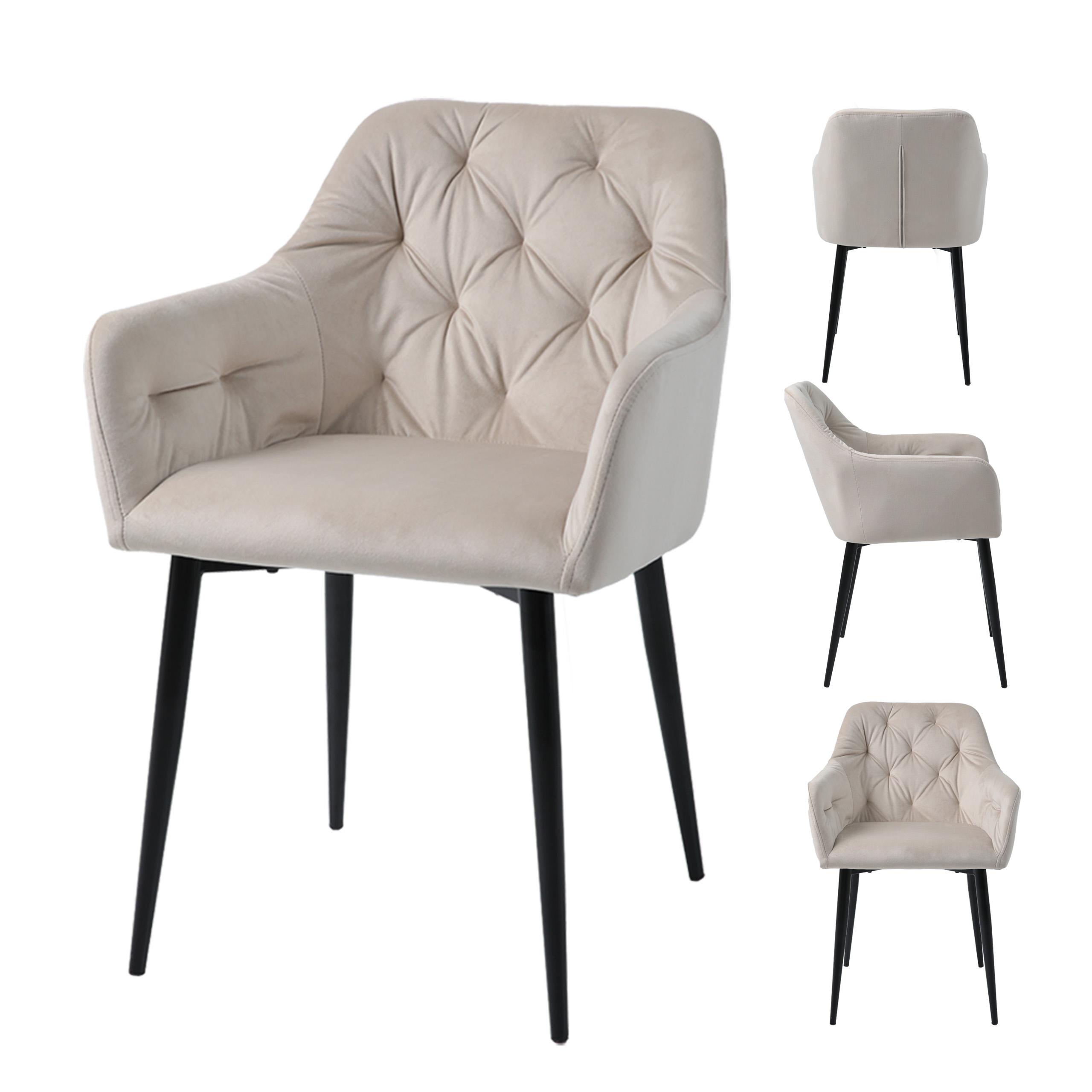 Krzesło tapicerowane z podłokietnikami do jadalni welurowe beżowe JULIA 2 | MakataSolution