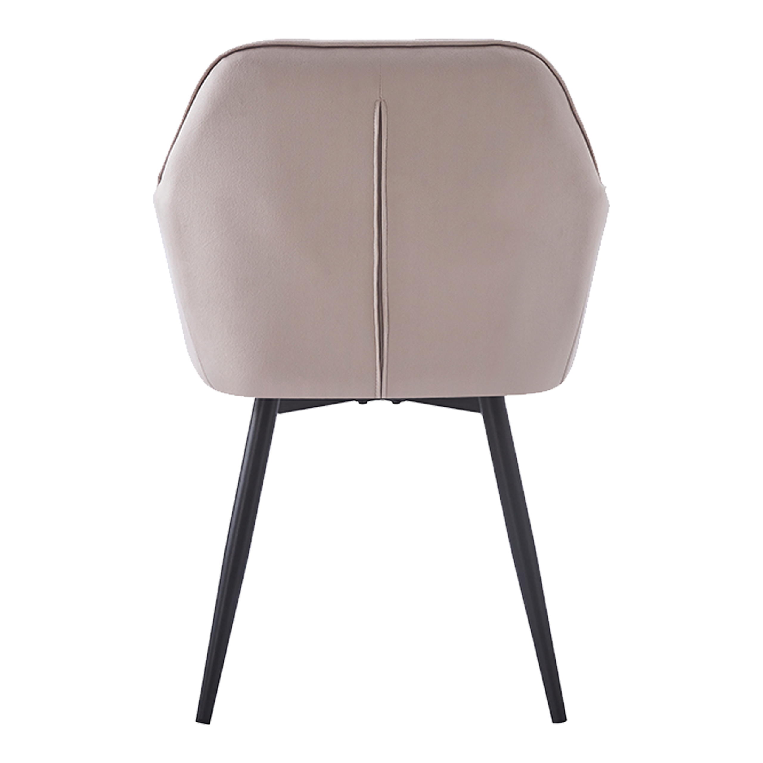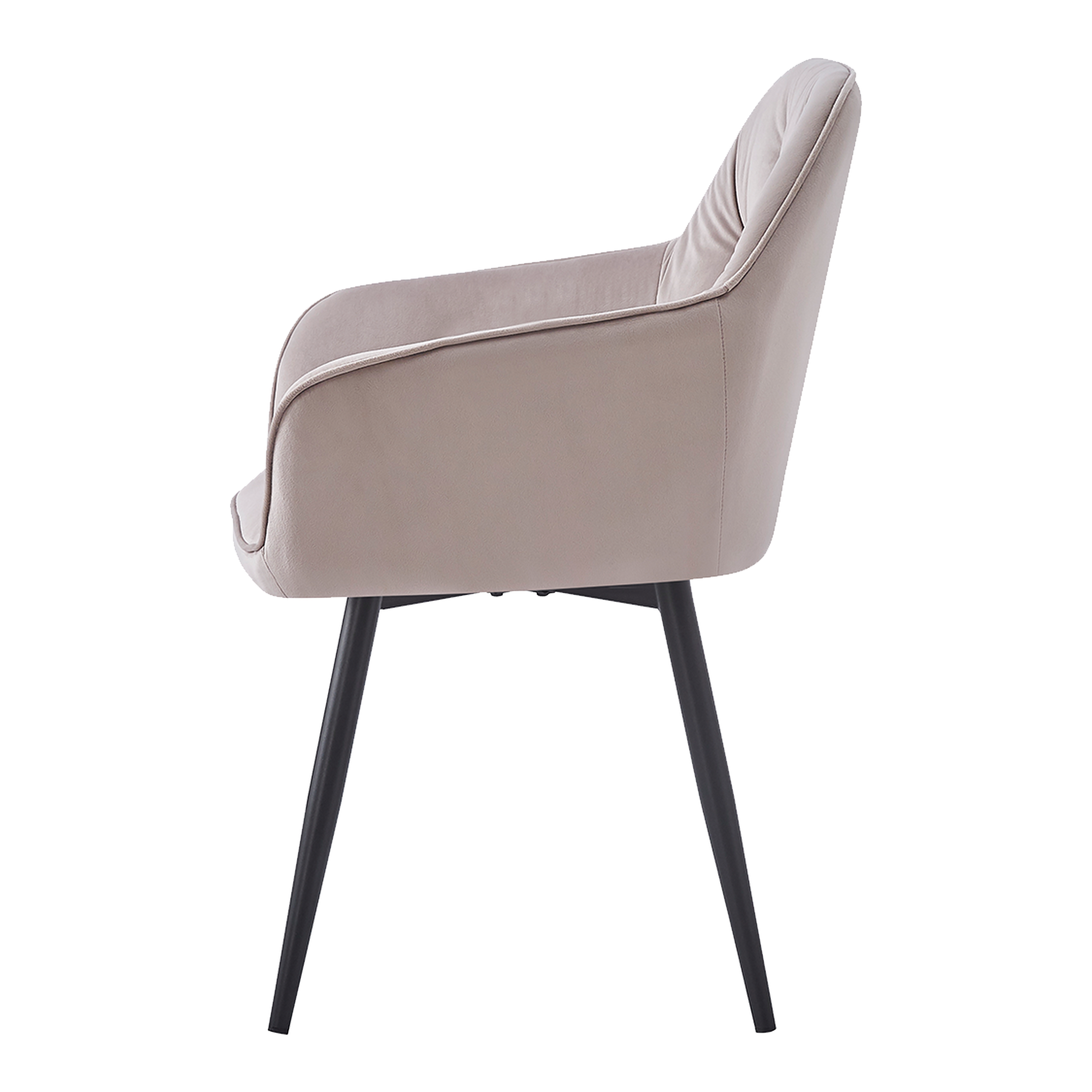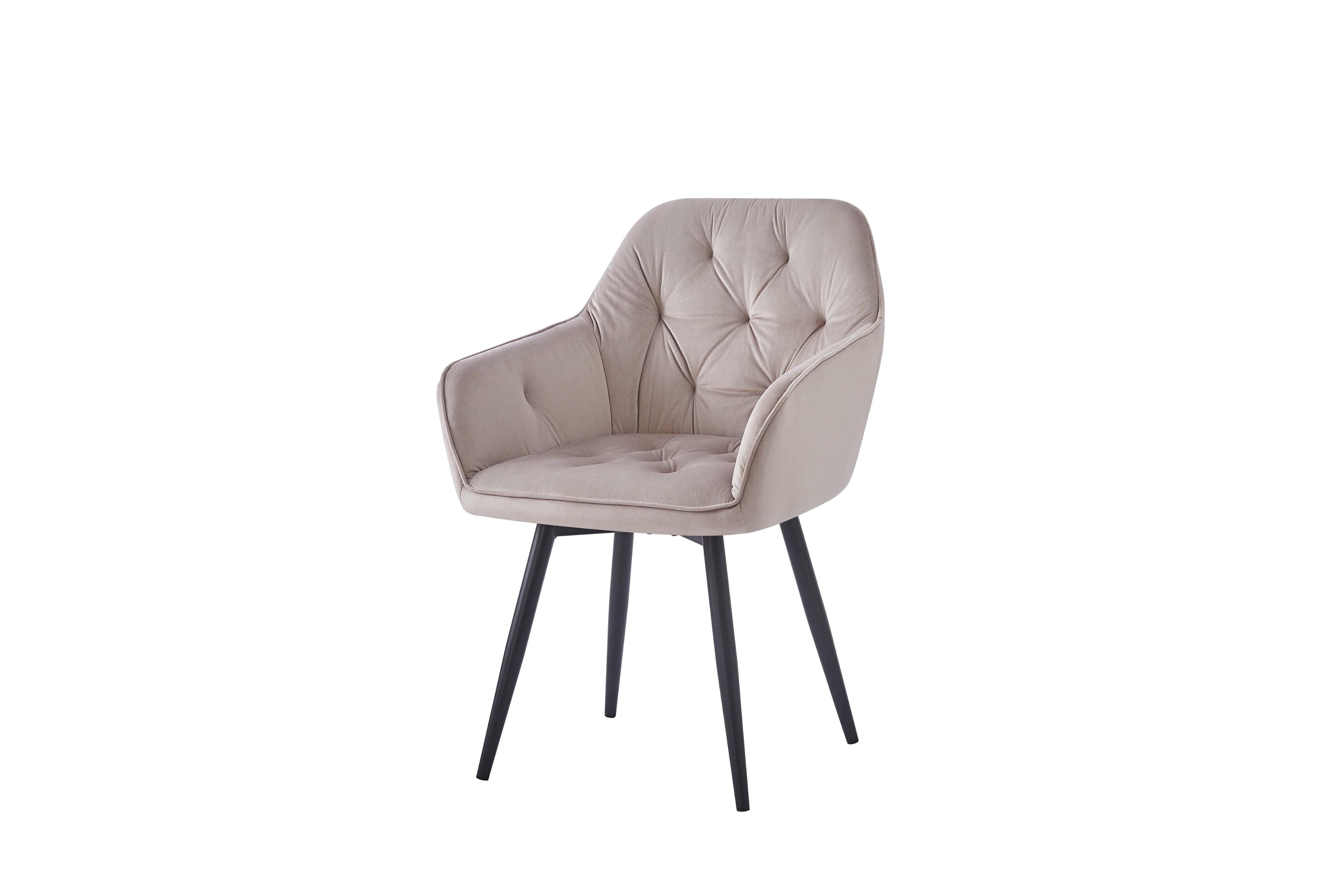 Krzesło tapicerowane JULIA KT202 w kolorze taupe z welurową tapicerką i metalowymi nogami malowanymi proszkowo na czarno. Ergonomiczne oparcie, miękkie siedzisko z pianki — do jadalni, salonu i biura.