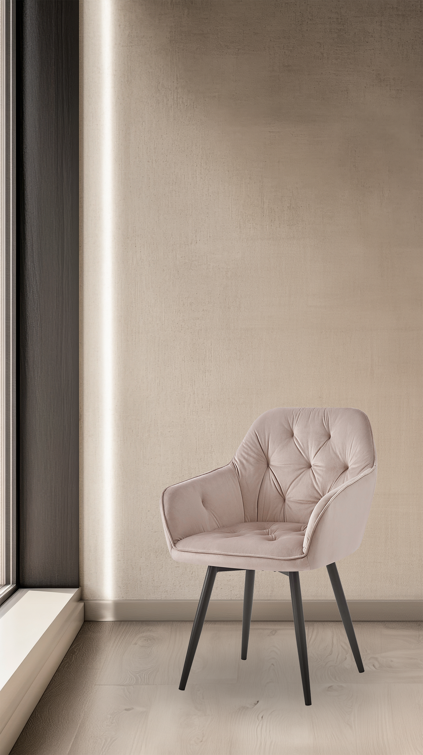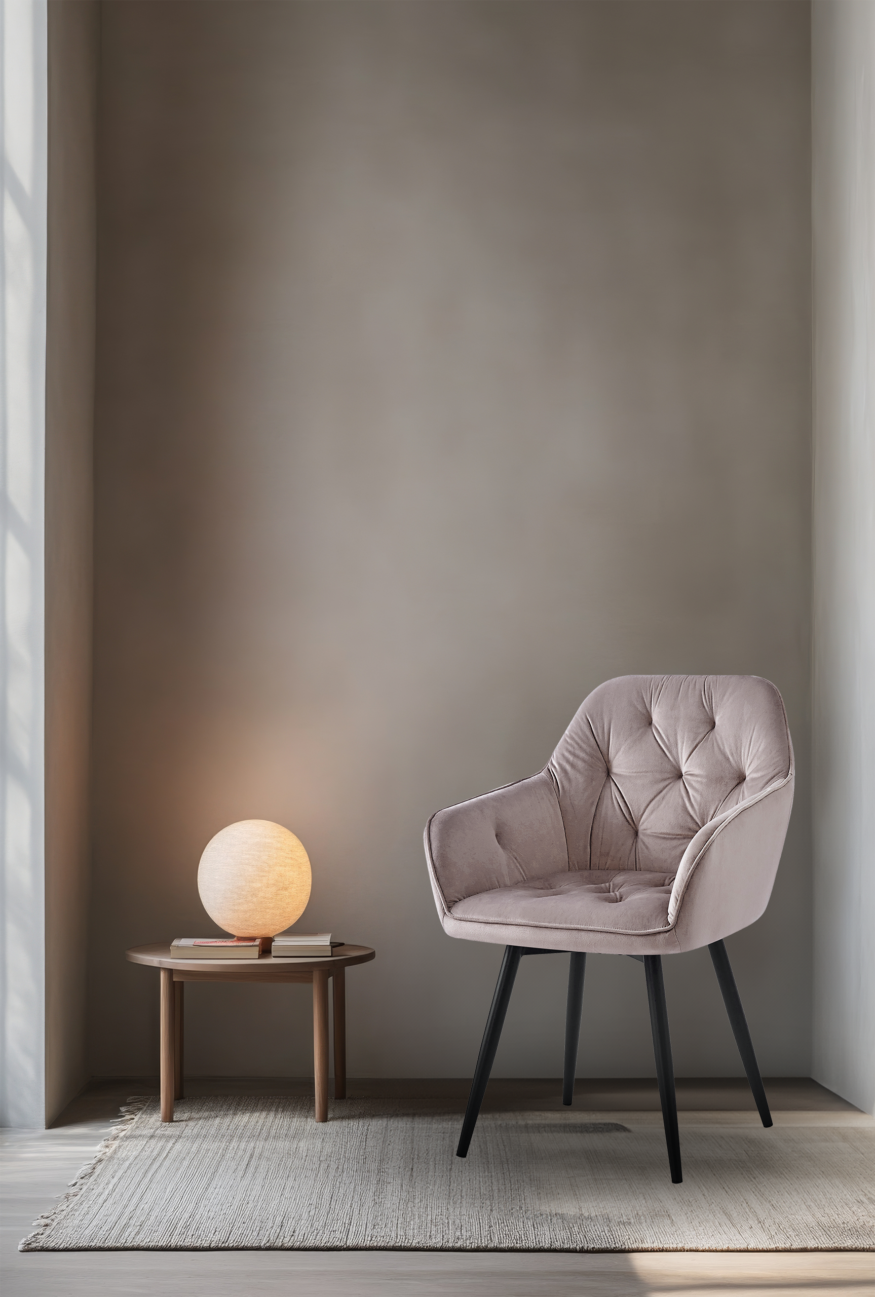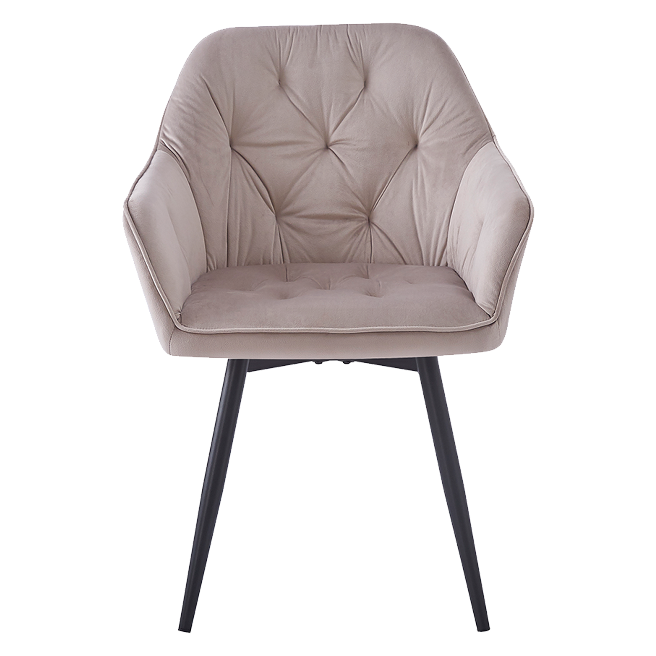 Krzesło tapicerowane JULIA KT202 w kolorze taupe z welurową tapicerką i metalowymi nogami malowanymi proszkowo na czarno. Ergonomiczne oparcie, miękkie siedzisko z pianki — do jadalni, salonu i biura.