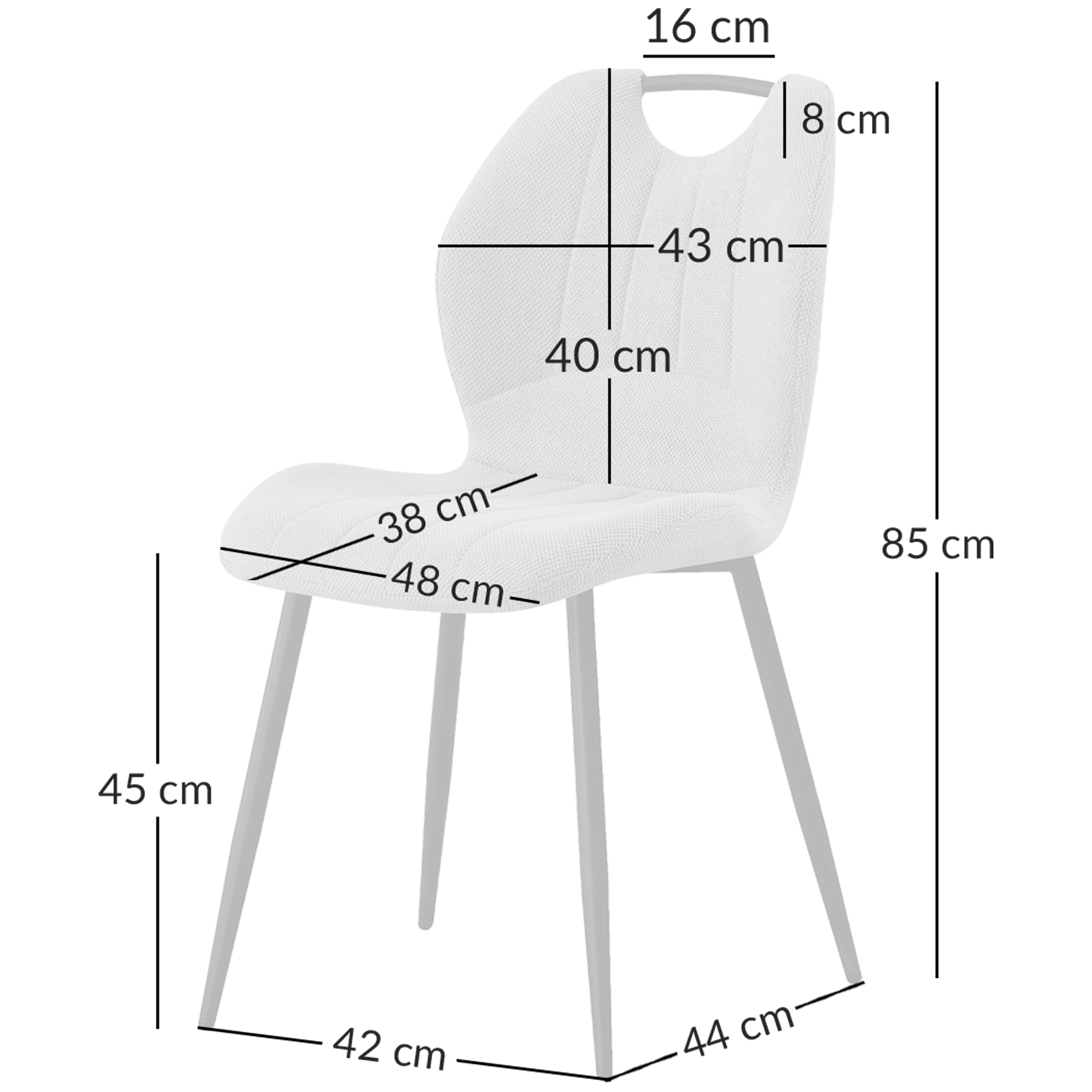 | Głębokość siedziska | 38 cm Nogi |
