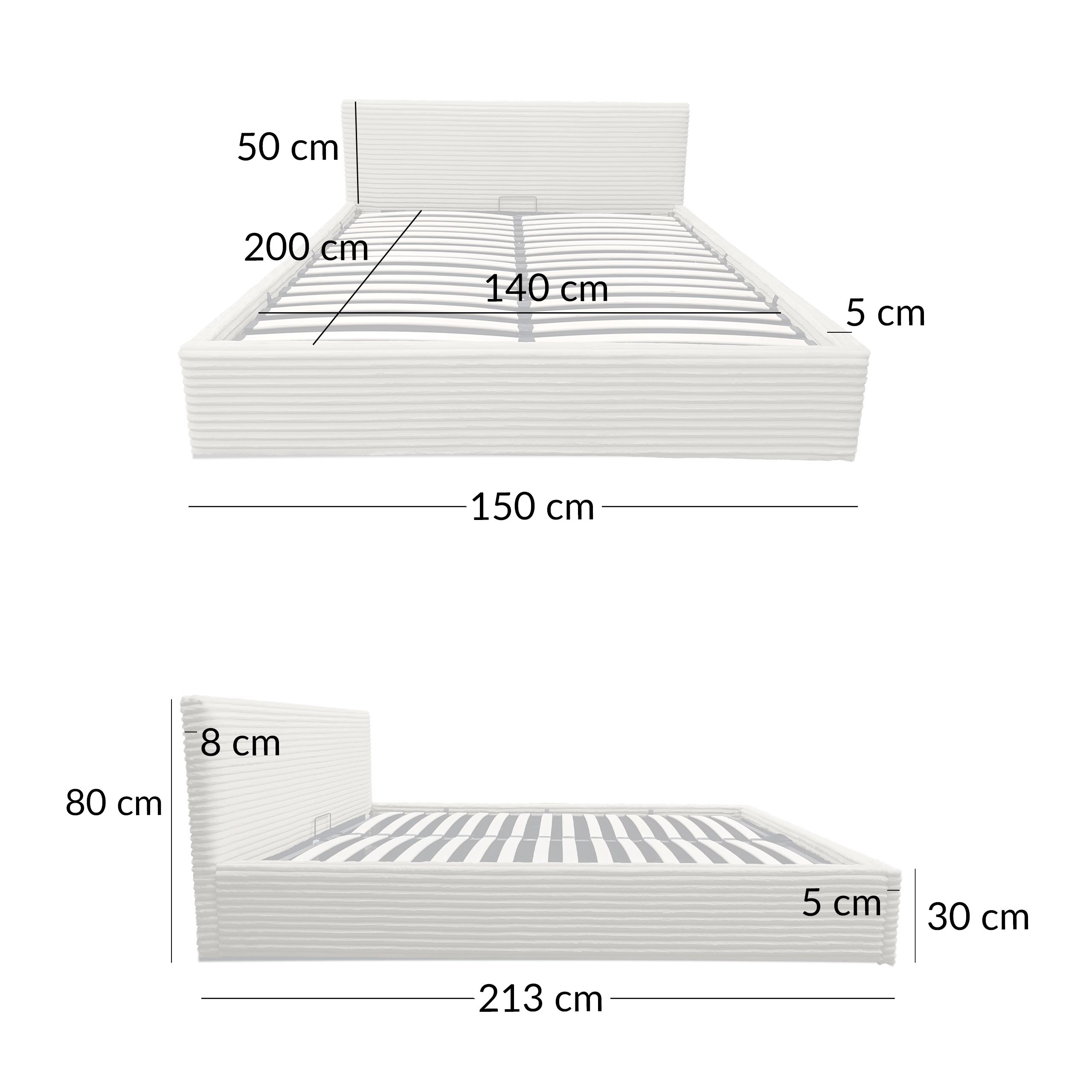 Łóżko z pojemnikiem i zagłówkiem tapicerowane tkaniną sztruksową LT100 Cordo 140x200x80 taupe Łóżko Cordo LT100 w kolorze taupe to elegancki wybór dla osób ceniących stonowane barwy i funkcjonalne rozwiązania. Pojemnik na pościel oraz tapicerowany zagłówek podnoszą komfort codziennego wypoczynku. Najważniejsze cechy: Sztruksowa tapicerka Pojemnik na pościel Tapicerowany zagłówek Stabilna konstrukcja Powierzchnia spania 140x200 cm Specyfikacja: Maksymalne obciążenie: 500 kg Szerokość całkowita: 150 cm Głębokość całkowita: 213 cm Wysokość całkowita: 80 cm Powierzchnia spania: 140x200 cm Konstrukcja: MDF tapicerowany, tkanina sztruks Waga: 44,3 kg Producent: Kontrasto Cordo LT100 w odcieniu taupe subtelnie podkreśla charakter sypialni i zapewnia wygodne miejsce do codziennego odpoczynku.