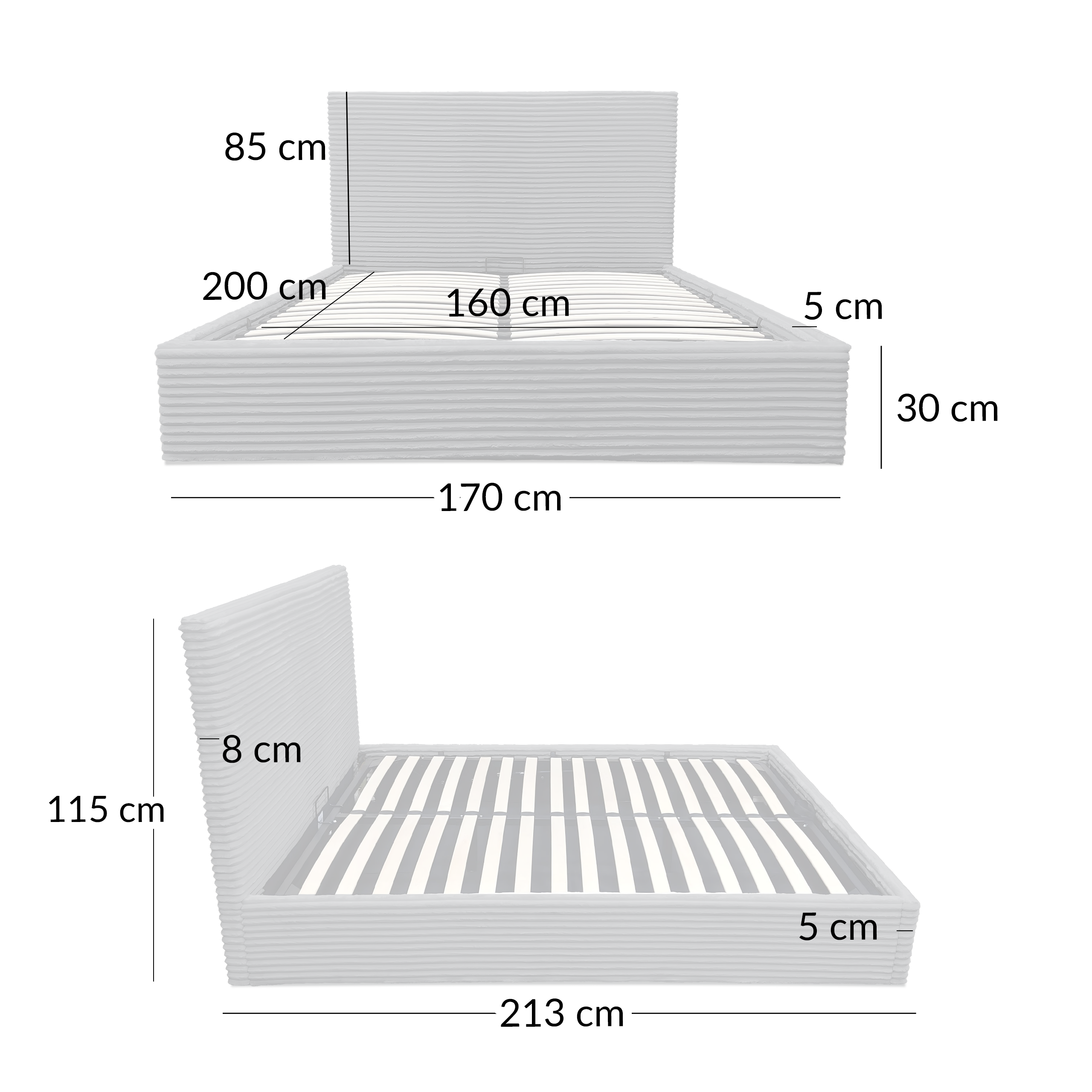 Łóżko z pojemnikiem i zagłówkiem tapicerowane tkaniną sztruksową LT100 Cordo 160x200x115 szary Łóżko Cordo LT100 w szarym kolorze to uniwersalny wybór do nowoczesnej sypialni. Duża powierzchnia spania oraz praktyczny pojemnik na pościel sprawiają, że jest to rozwiązanie wygodne i funkcjonalne. Najważniejsze cechy: Powierzchnia spania 160x200 cm Tapicerowane tkaniną sztruksową Pojemnik na pościel Tapicerowany zagłówek Stabilna konstrukcja Specyfikacja: Maksymalne obciążenie: 500 kg Szerokość całkowita: 170 cm Głębokość całkowita: 213 cm Wysokość całkowita: 115 cm Powierzchnia spania: 160x200 cm Konstrukcja: MDF tapicerowany, tkanina sztruks Waga: 49,2 kg Producent: Kontrasto Cordo LT100 160x200 cm to wygodne łóżko, które łączy praktyczne przechowywanie z ponadczasowym wyglądem.