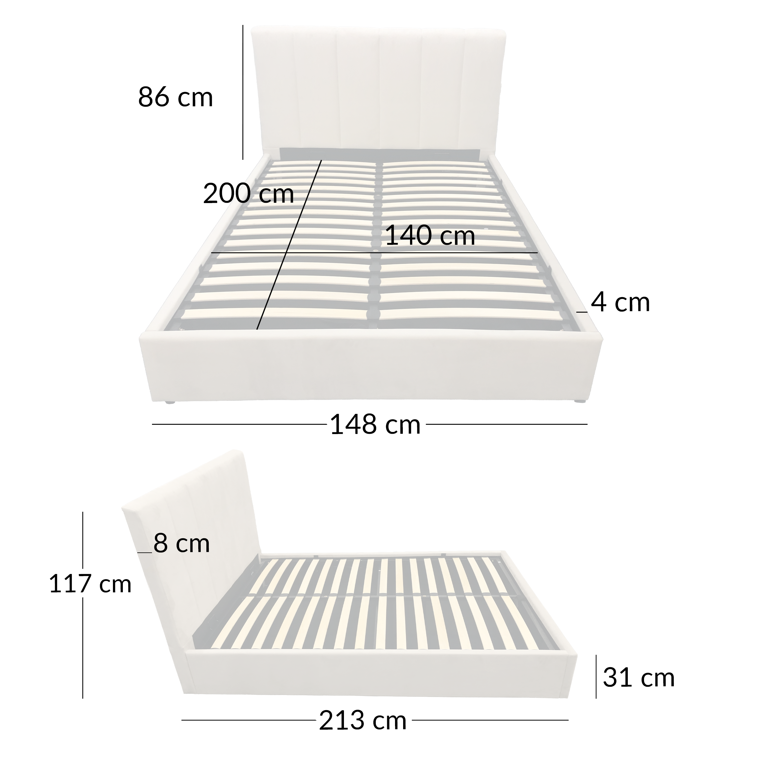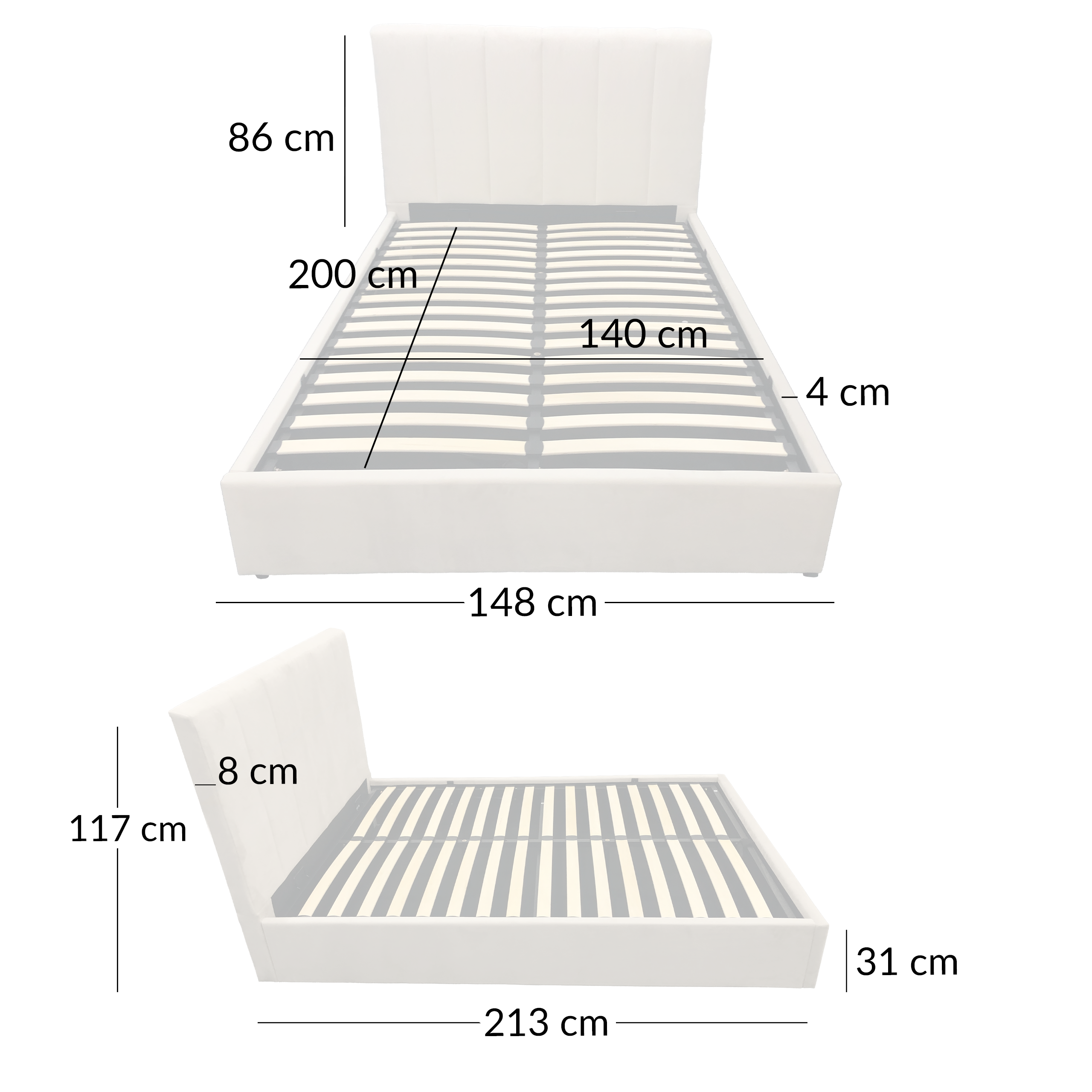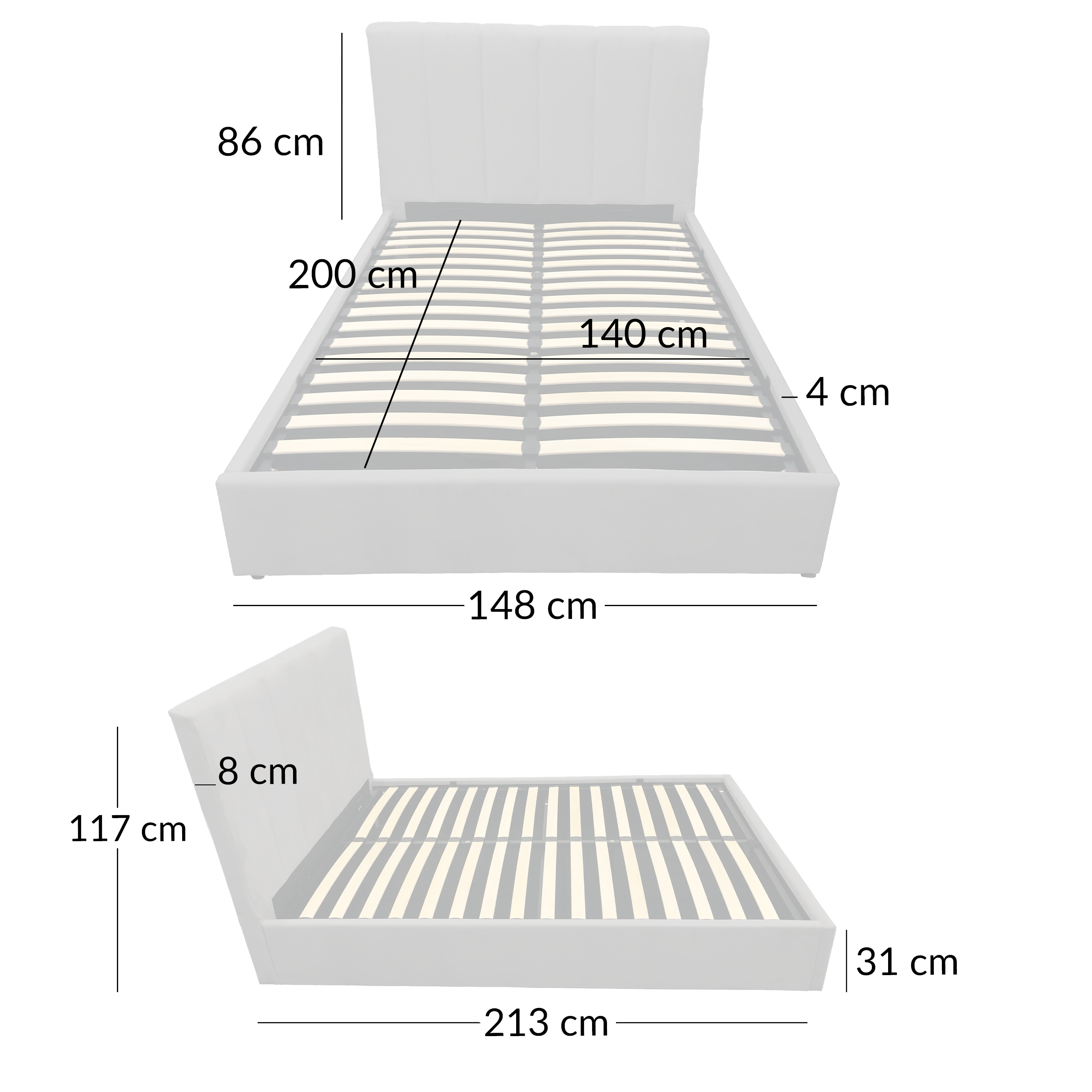 | Wysokość całkowita | 117 cm Powierzchnia spania |