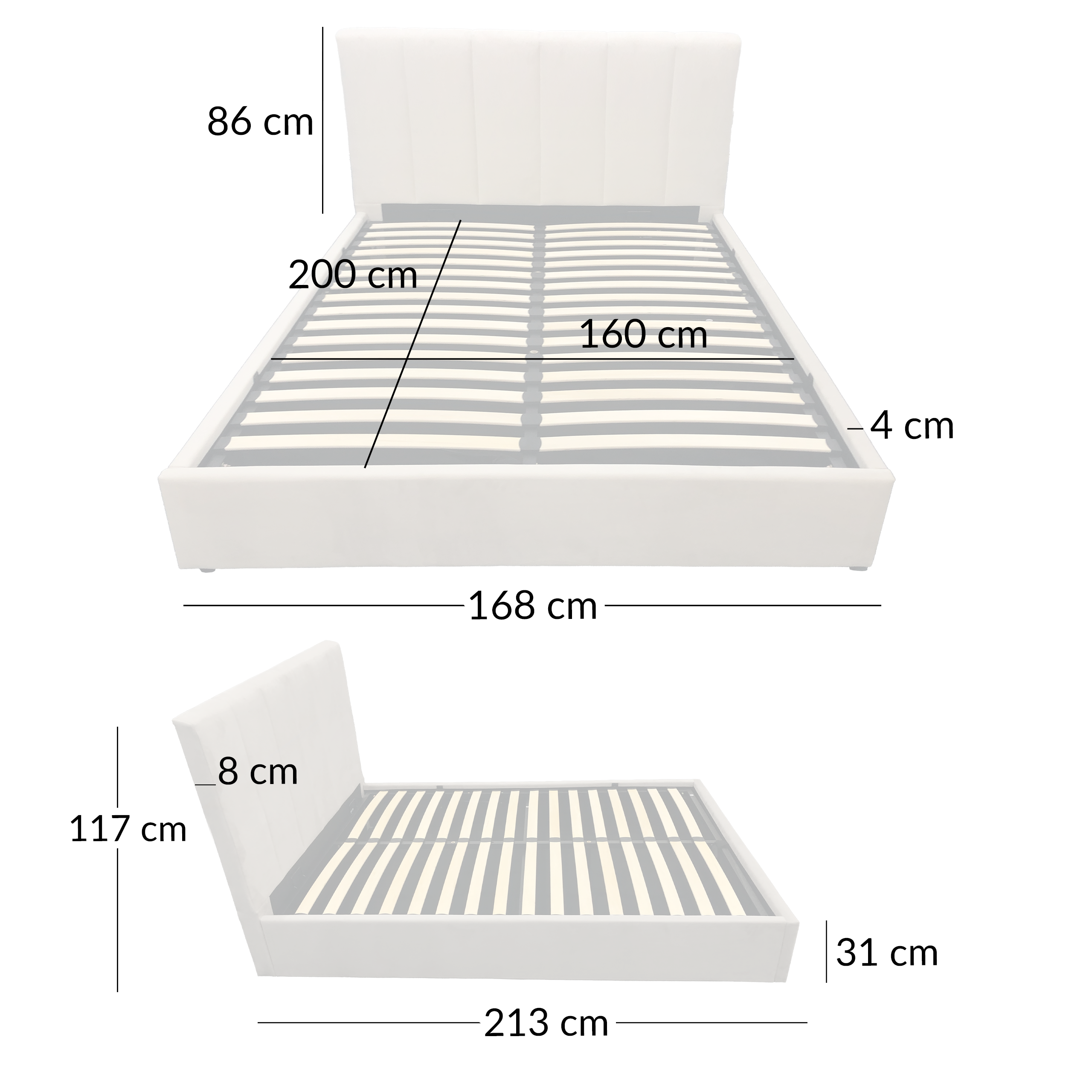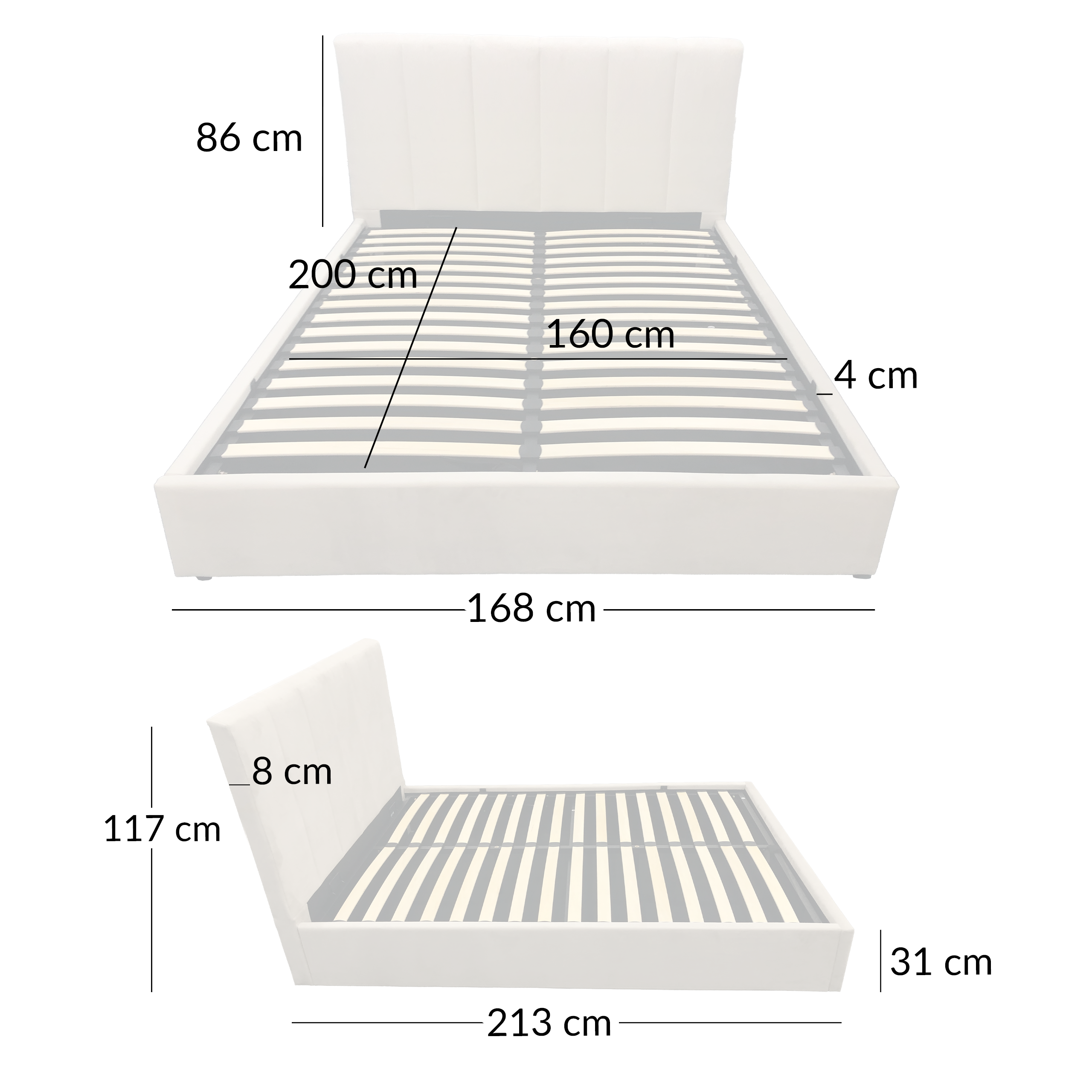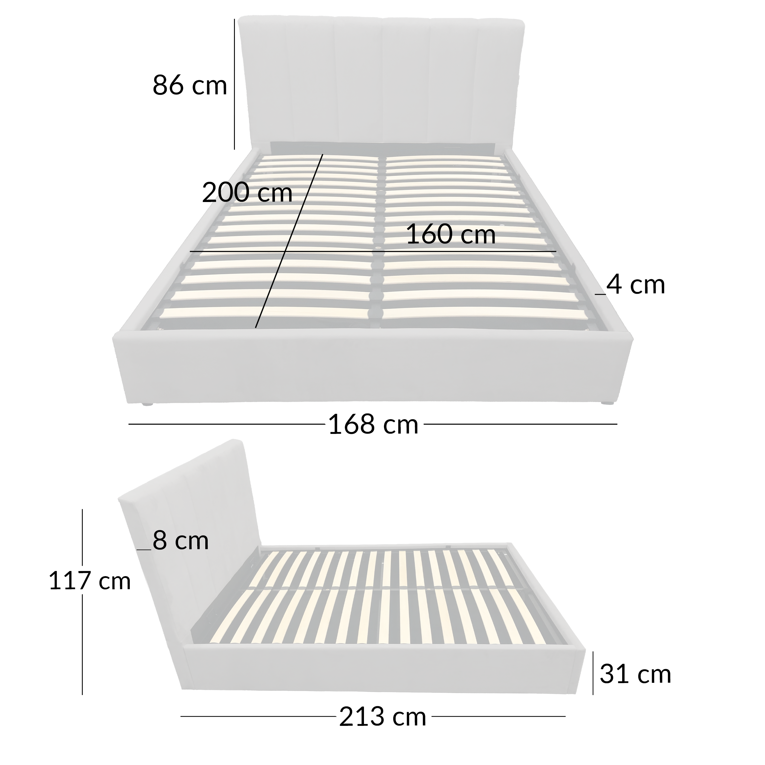 | Wysokość całkowita | 117 cm Powierzchnia spania |