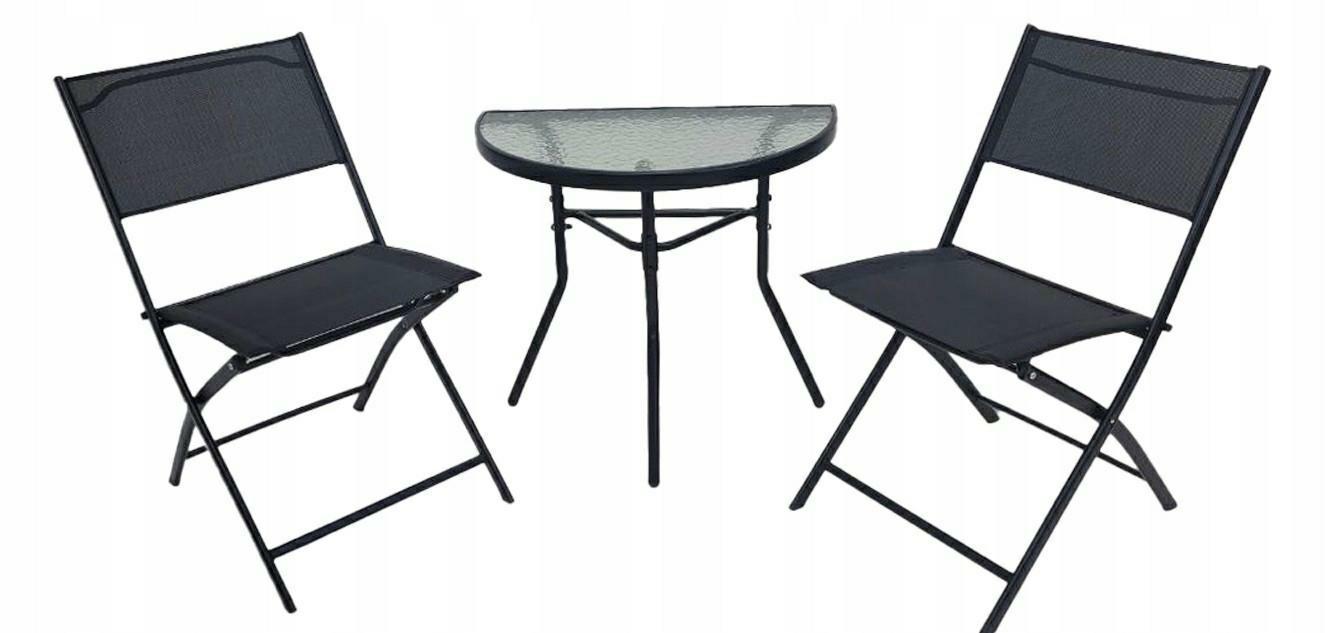 Mały zestaw mebli ogrodowych LIPARI L stół + 2 krzesła czarny | MakataSolution