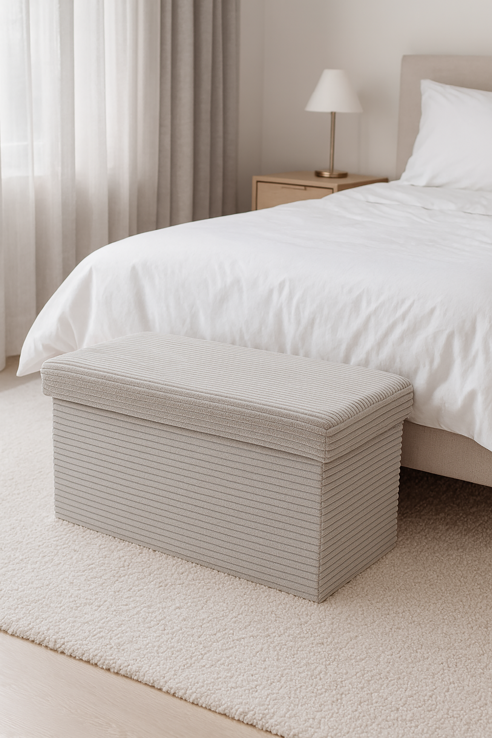 PRAKTYCZNA I ELEGANCKA PUFA SZTRUKSOWA LAMPAS DUO — JASNY SZARY Dodaj funkcjonalności i elegancji do swojego wnętrza dzięki pufie Lampas Duo w kolorze jasnoszarym. Ten stylowy mebel pełni rolę siedziska oraz schowka, pomagając utrzymać porządek i optymalnie wykorzystać przestrzeń. Tapicerka z miękkiego sztruksu nadaje wnętrzu przytulności i nowoczesnego charakteru.