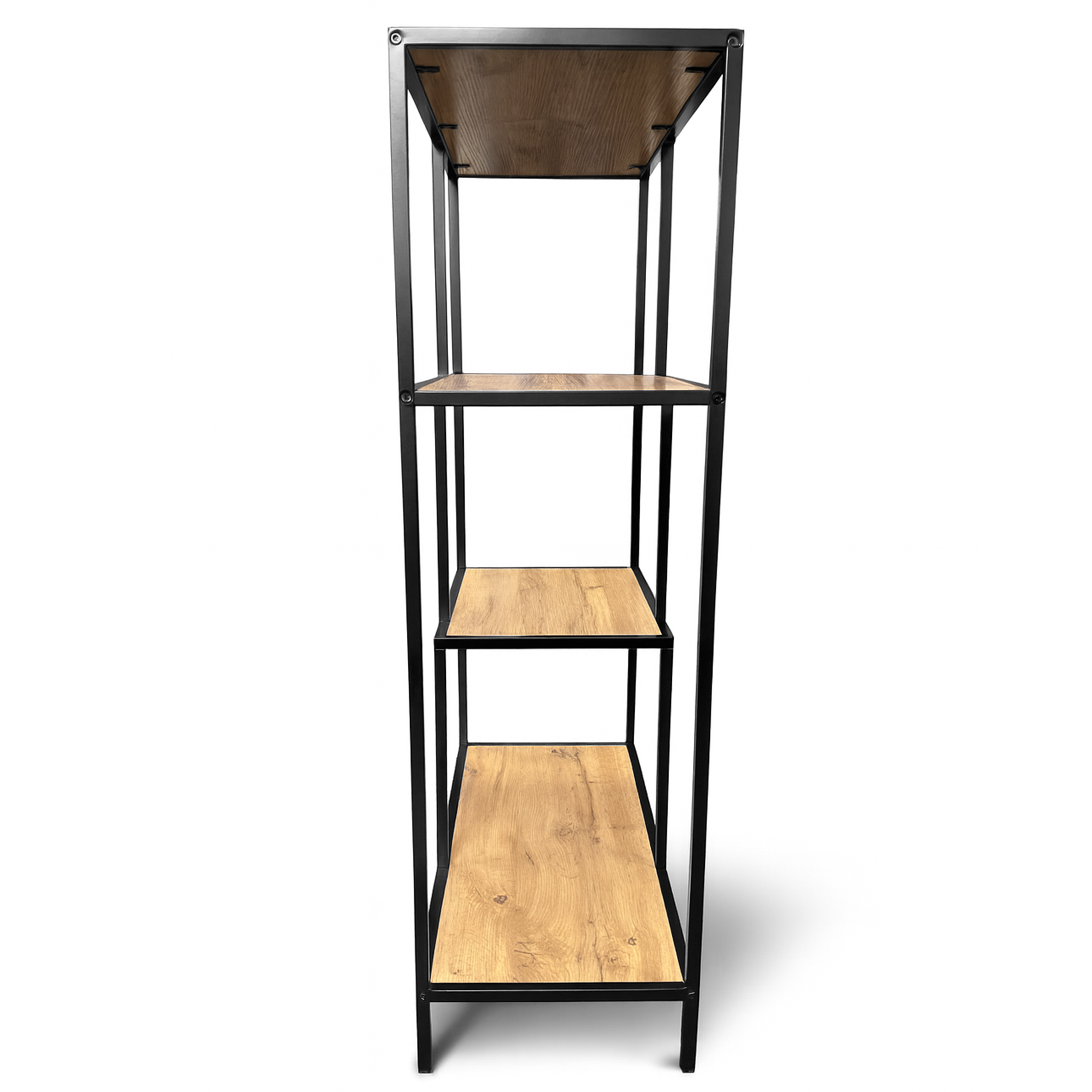 | Głębokość | 33 cm Konstrukcja: stal malowana proszkowo, kolor czarny Półki: płyta MDF z melaminą, kolor dąb Wymiar kartonu: 122 × 38 × 9 cm |