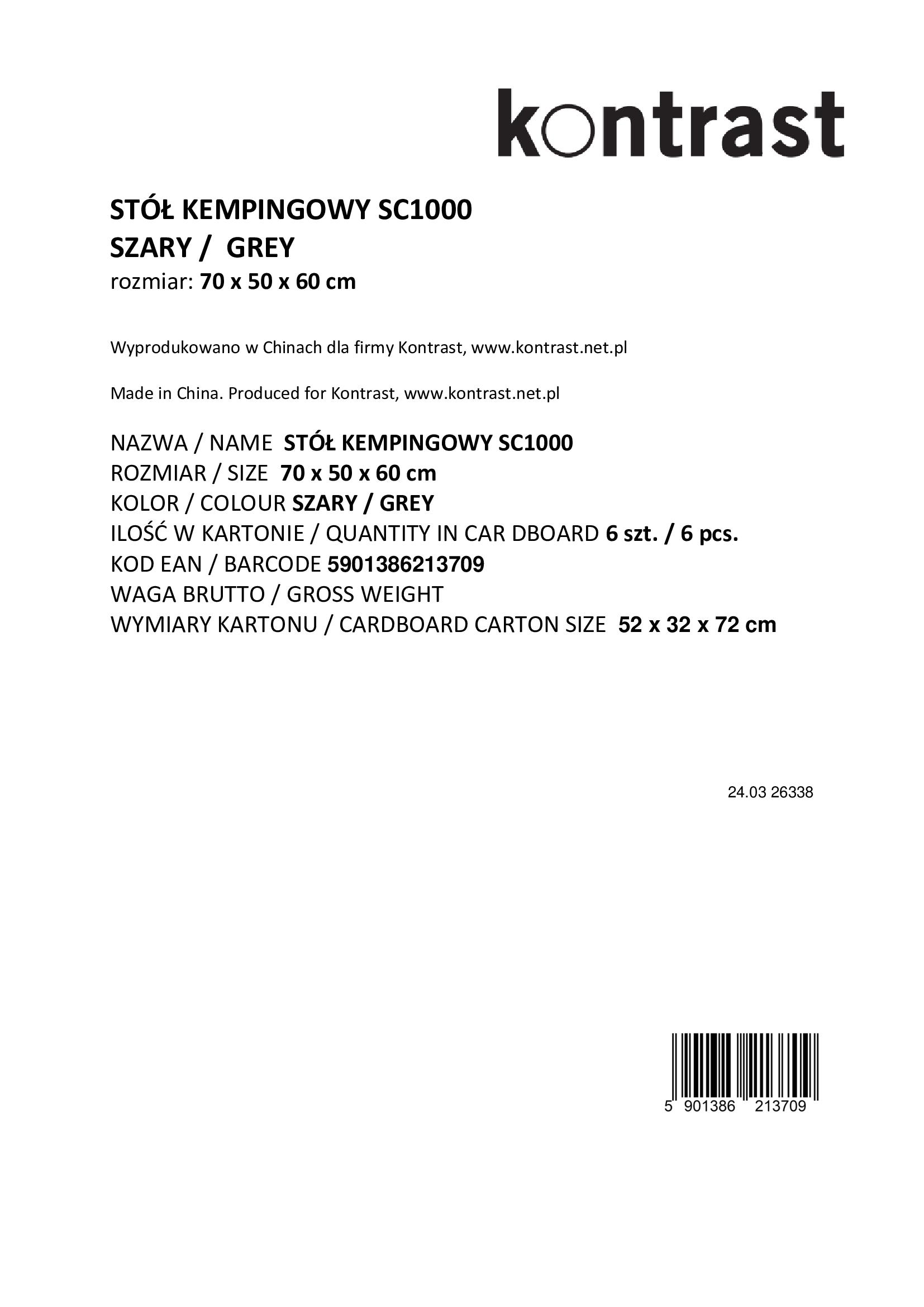 SC1000Stół kempingowy szary 70x50x60 cm | MakataSolution