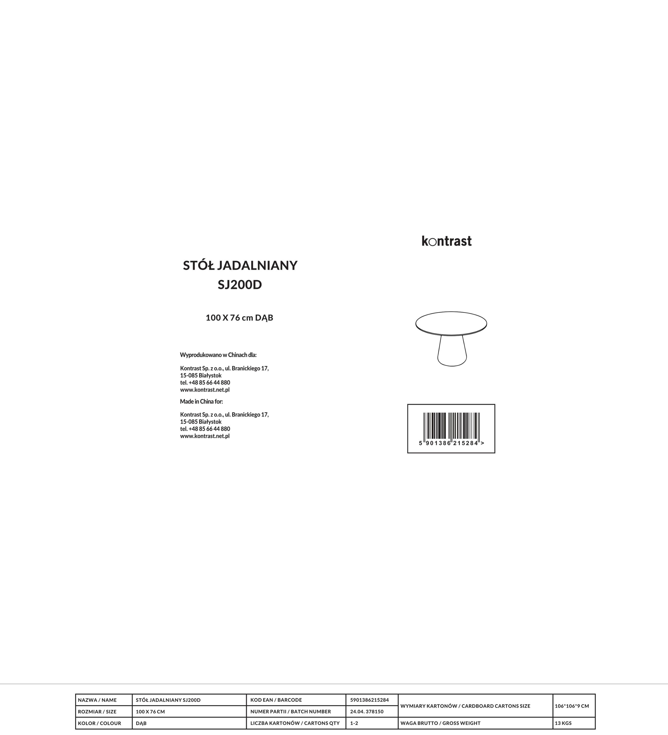 SJ200D Stół Otto 100x76cm DĄB | MakataSolution