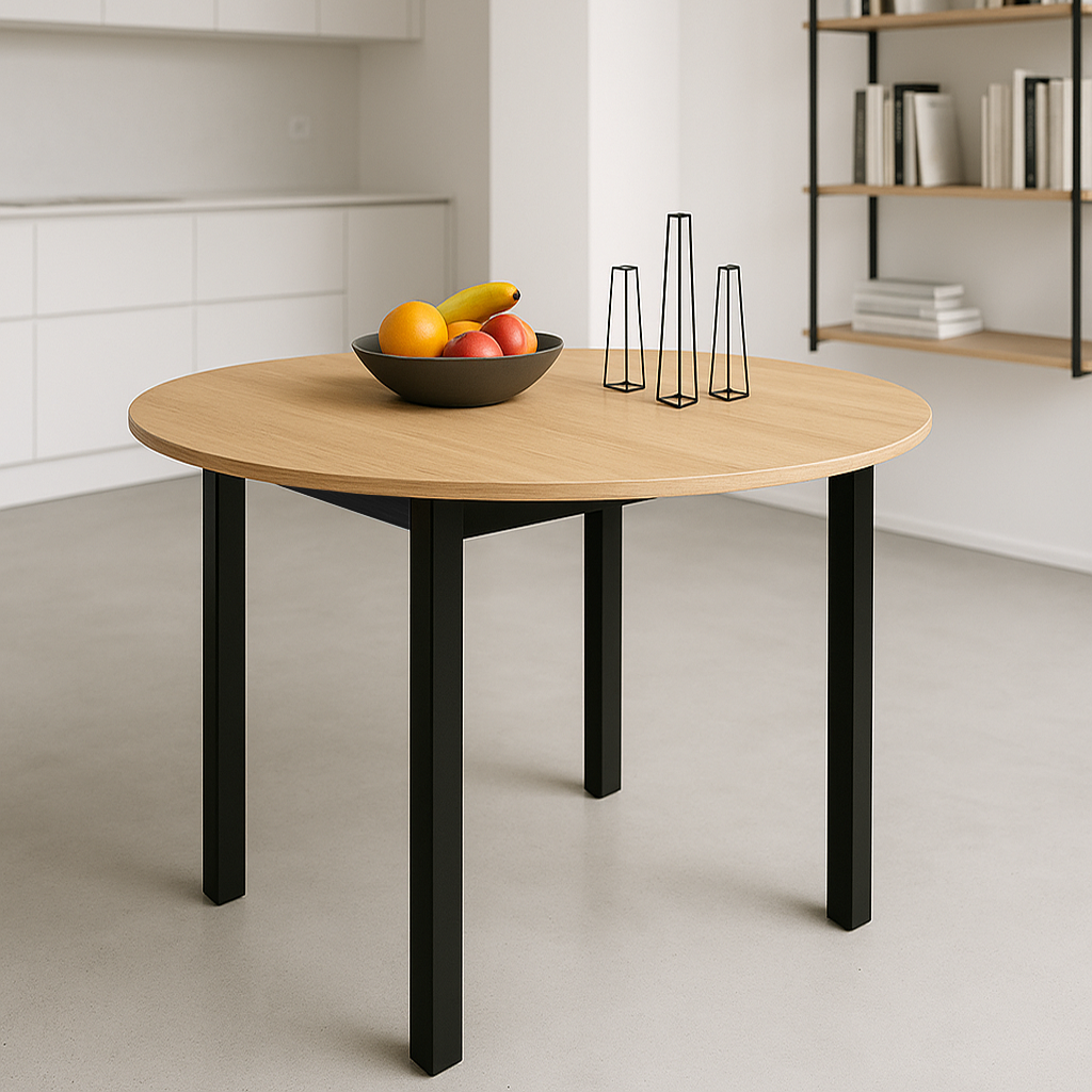 Nowoczesny stół Wiktor Ø110 Dąb Stylowy i funkcjonalny stół, który doskonale wpisze się w każde nowoczesne wnętrze. Jego prosty design i naturalne wykończenie w kolorze dębu sprawiają, że idealnie pasuje zarówno do salonu, jak i kuchni czy jadalni. Stabilna konstrukcja i wysokiej jakości materiały gwarantują trwałość na lata.