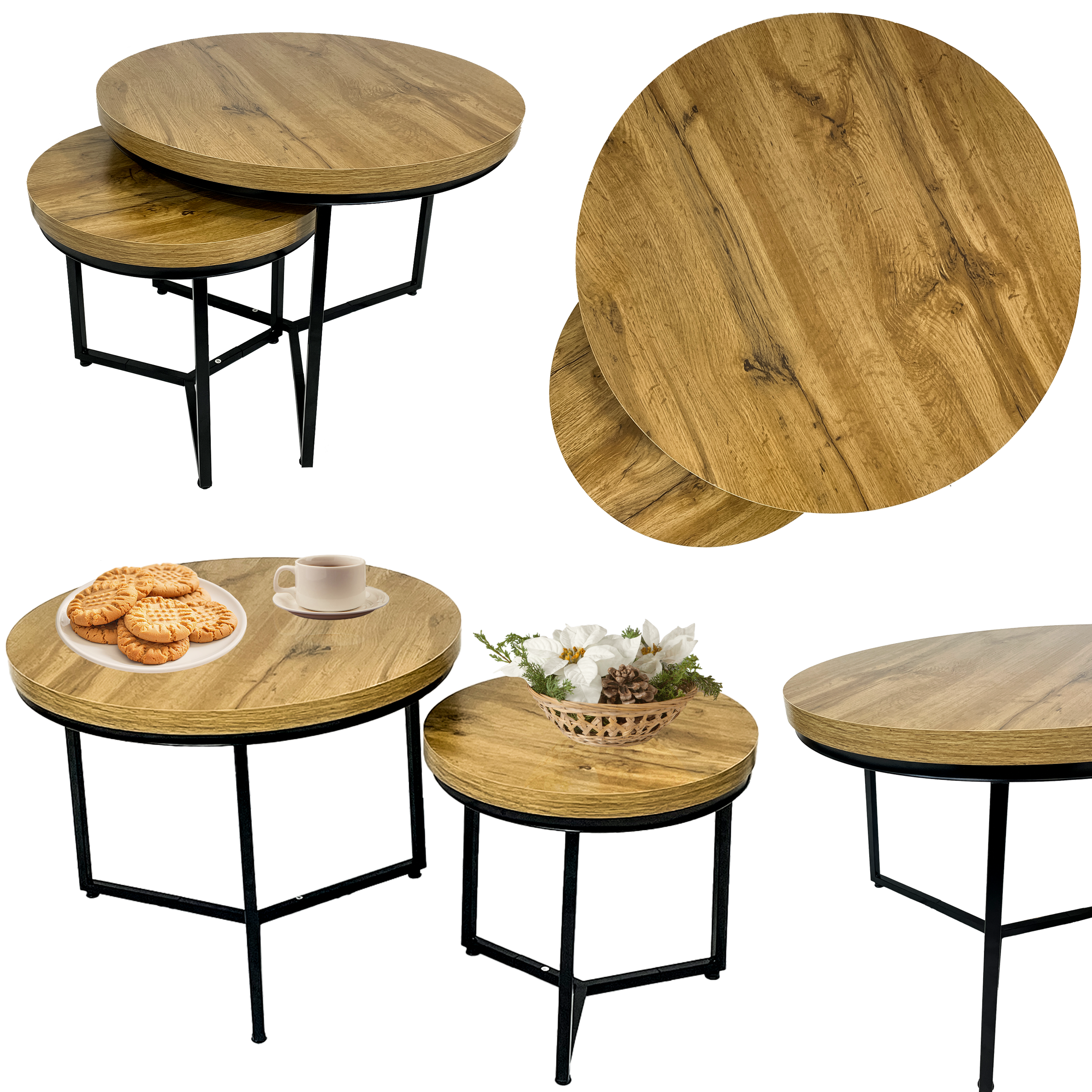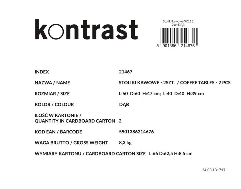 Stolik kawowy 2szt dąb SK113D 60x47/40x39 | MakataSolution