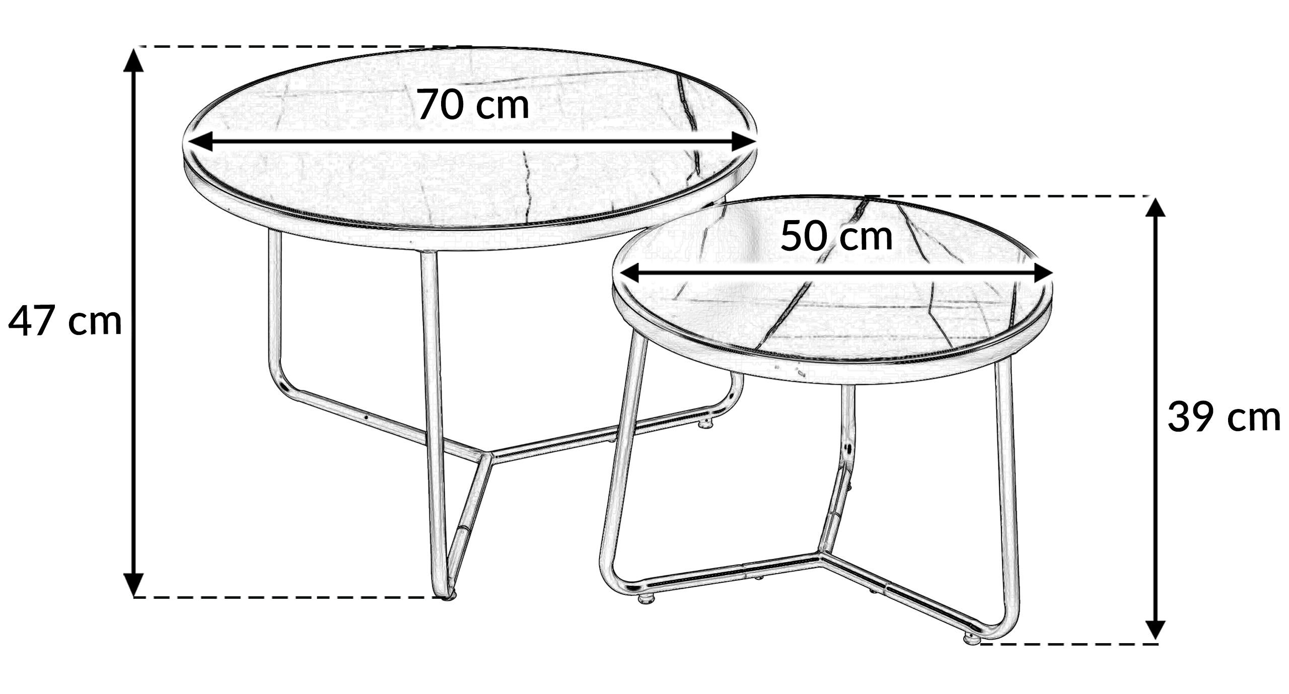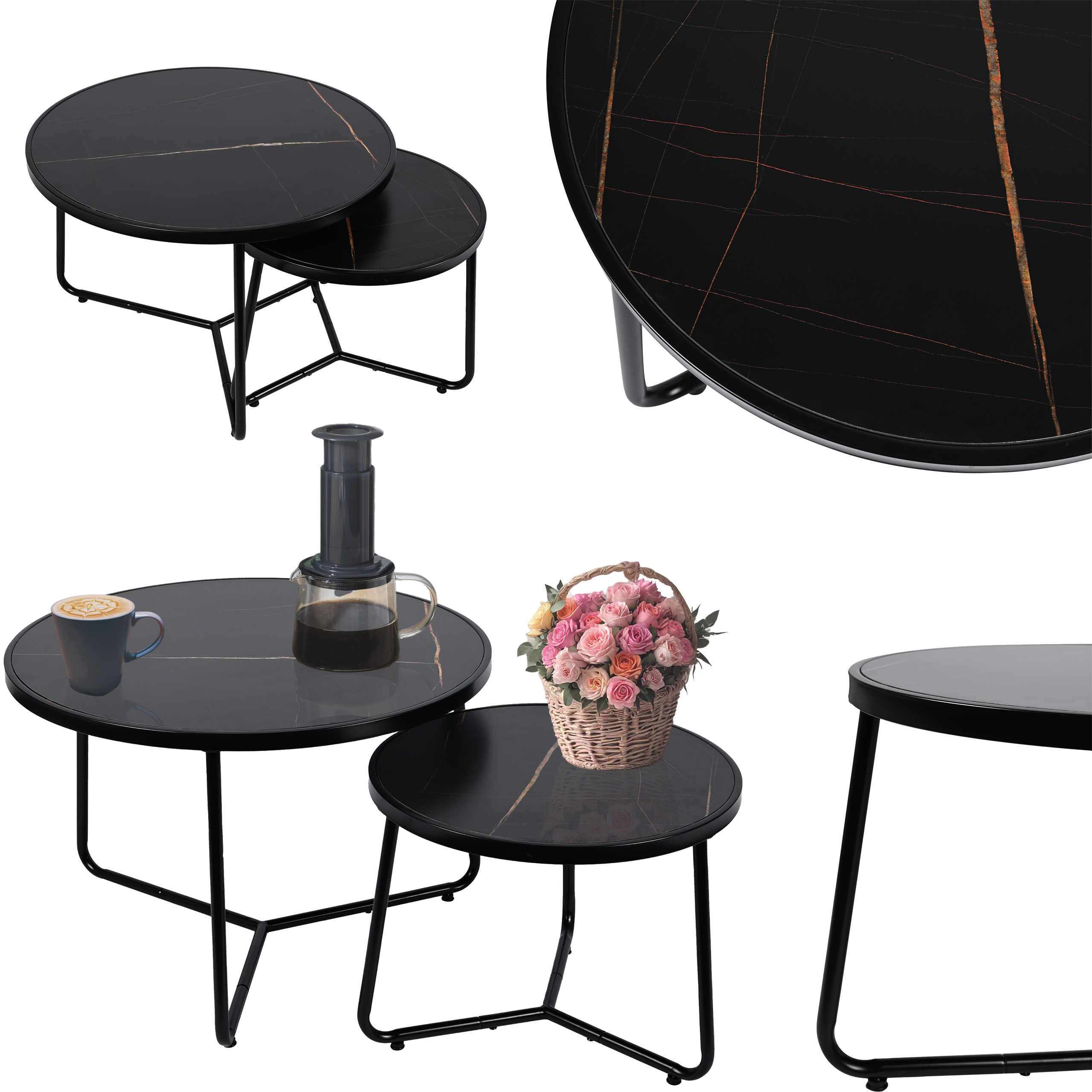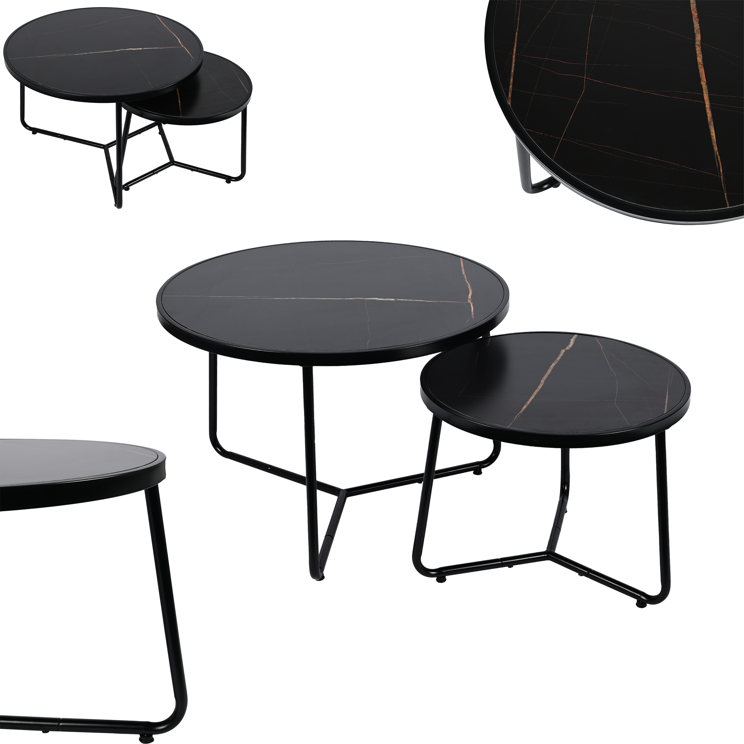 Stolik kawowy okrągły 2szt MARMUR CZARNY SK114MCZ 70x47/50x39cm | MakataSolution