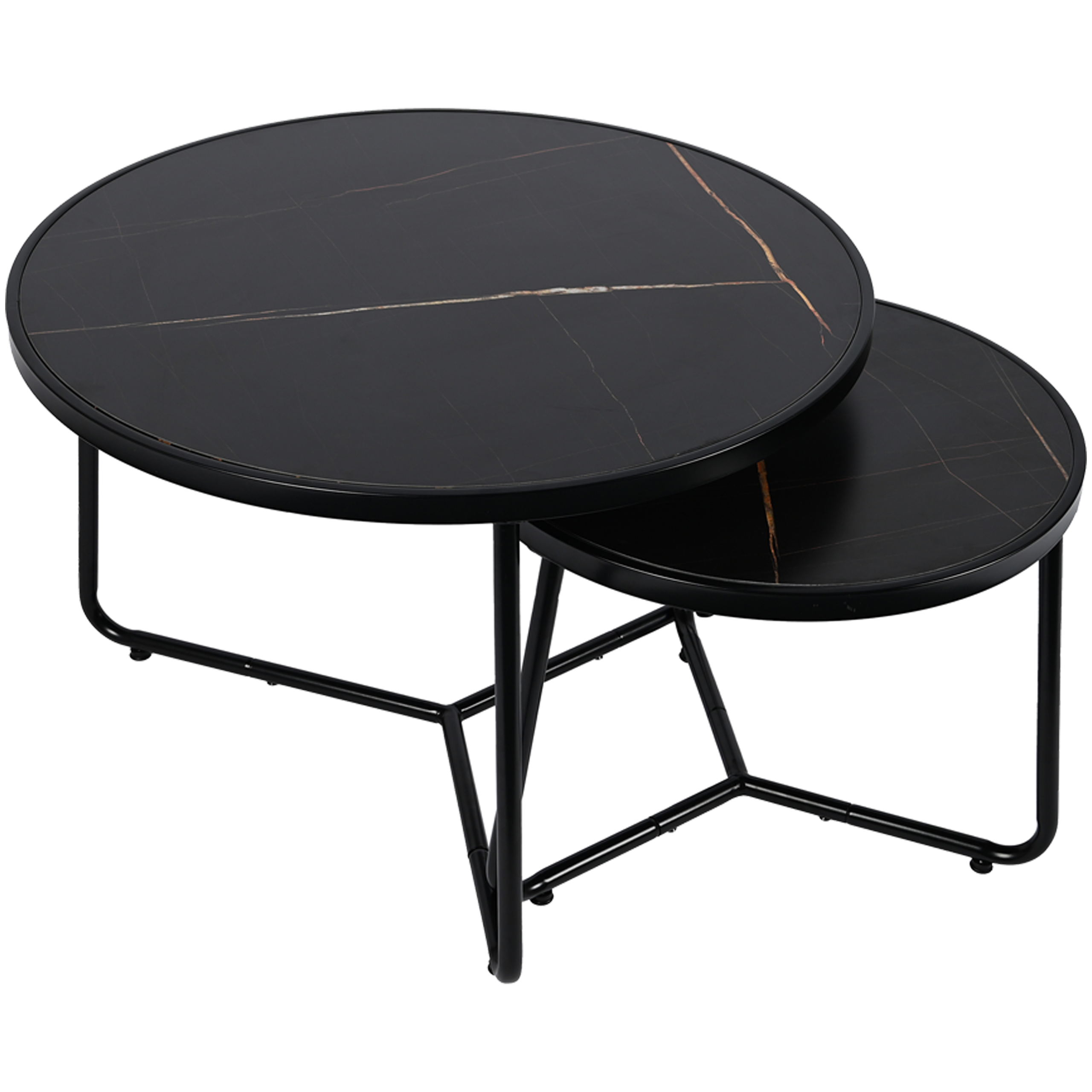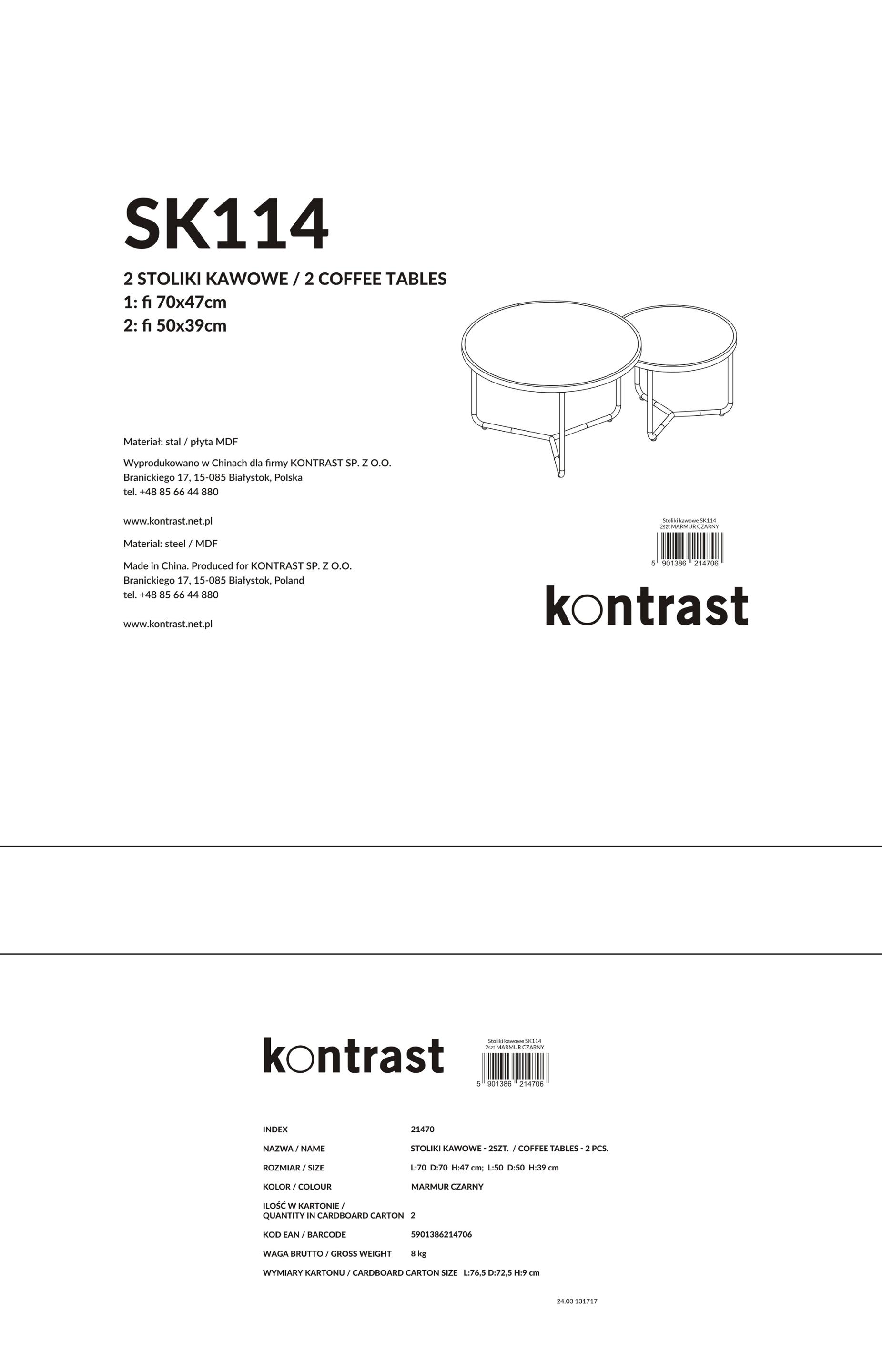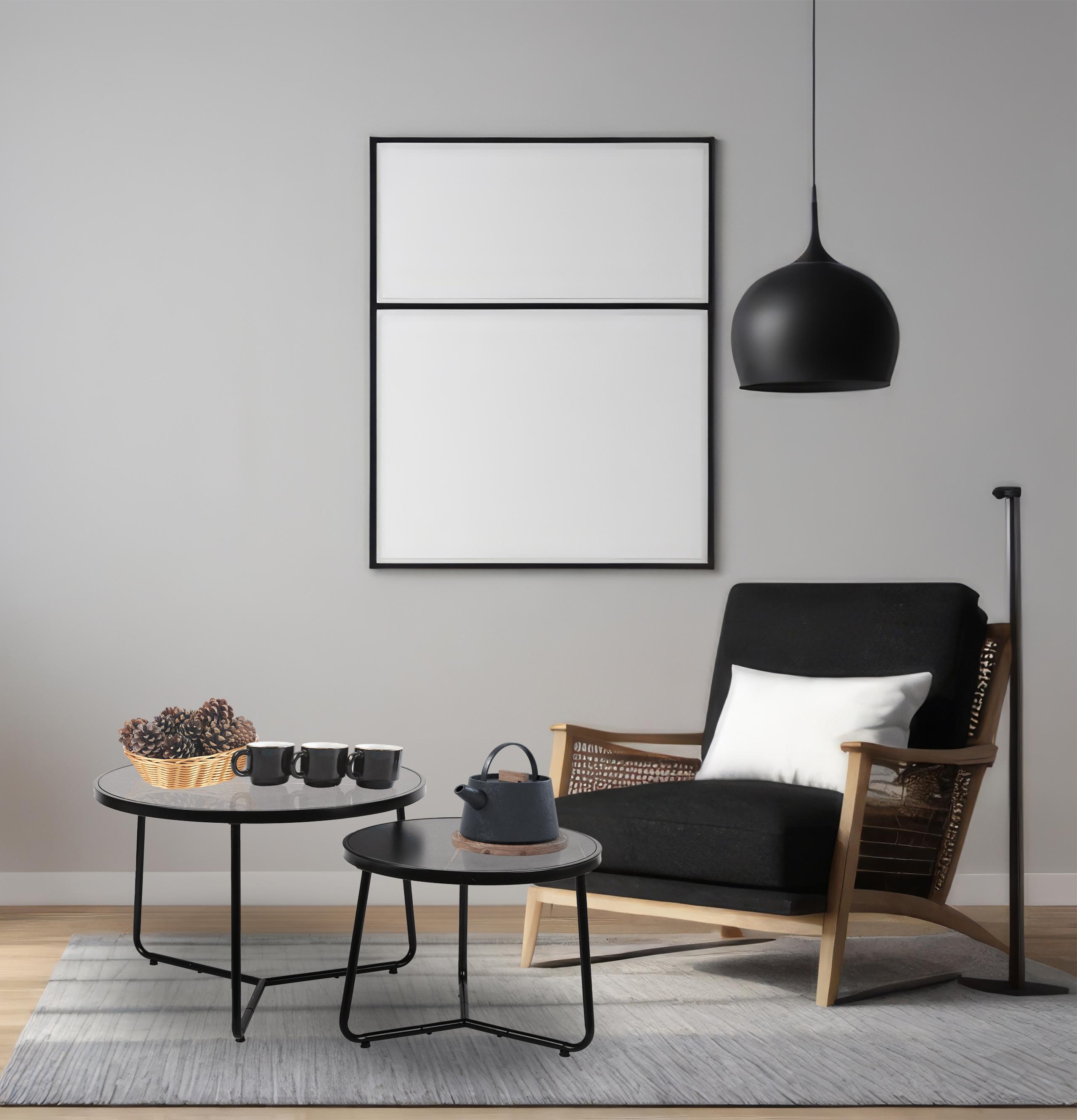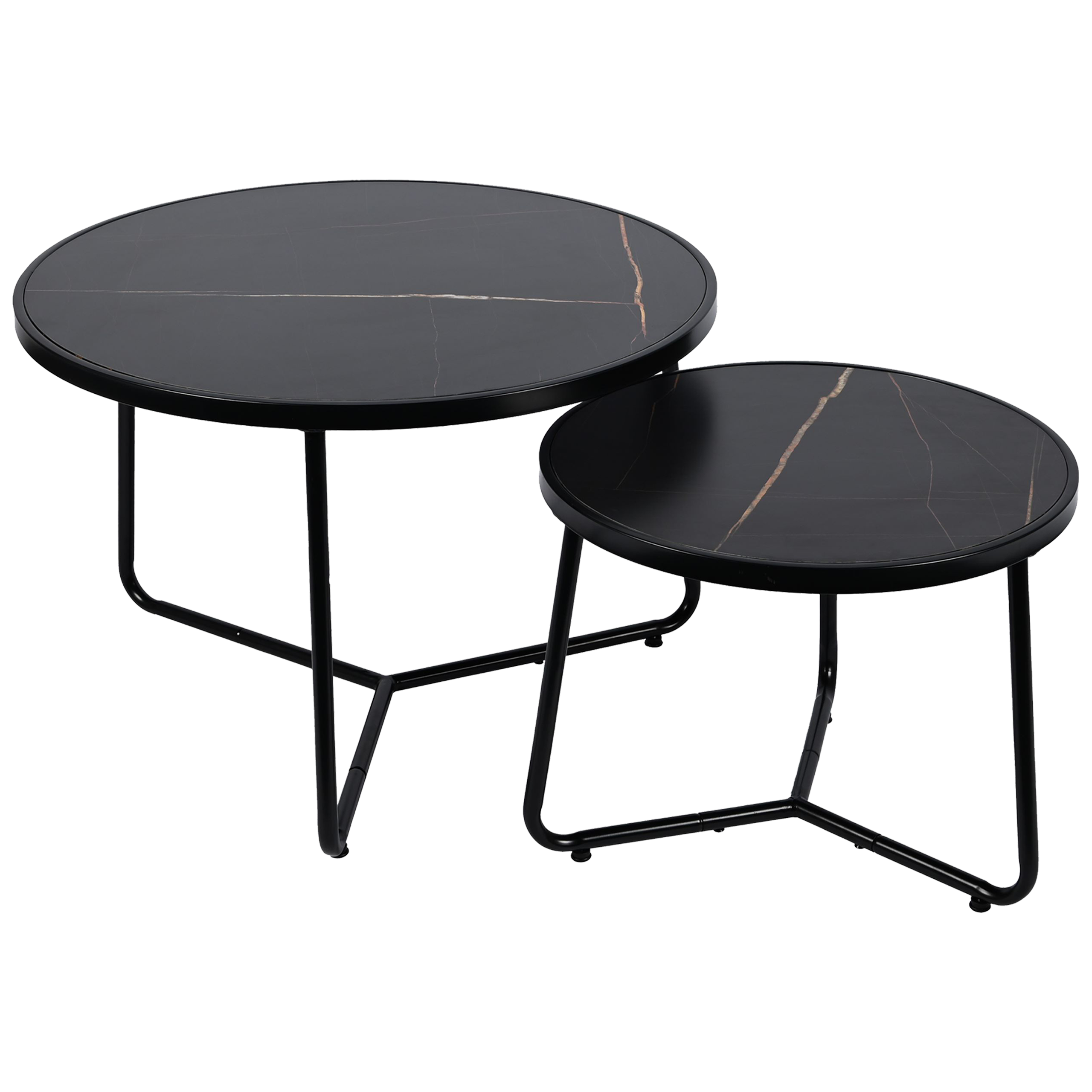 Stolik kawowy okrągły 2szt MARMUR CZARNY SK114MCZ 70x47/50x39cm | MakataSolution